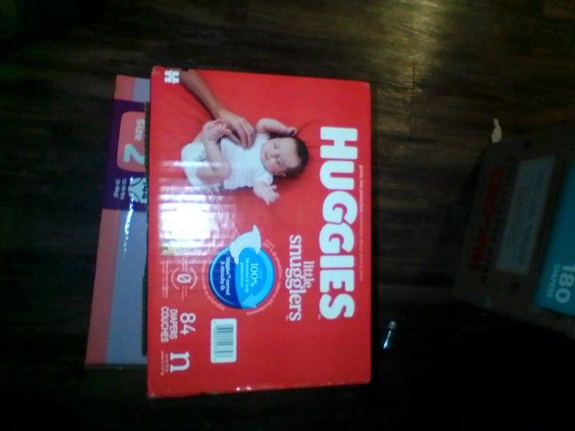 2 boxesHuggies, 1 box Pampers, 1 box Parents choice