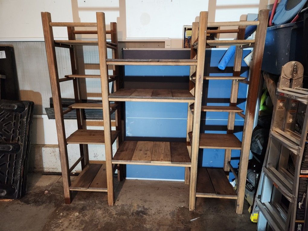 Antique book shelving. Goes together with pegs and Dowells Very good shape" Can be sanded and stained any color you want. Lots of possible designs. Asking 250 obo