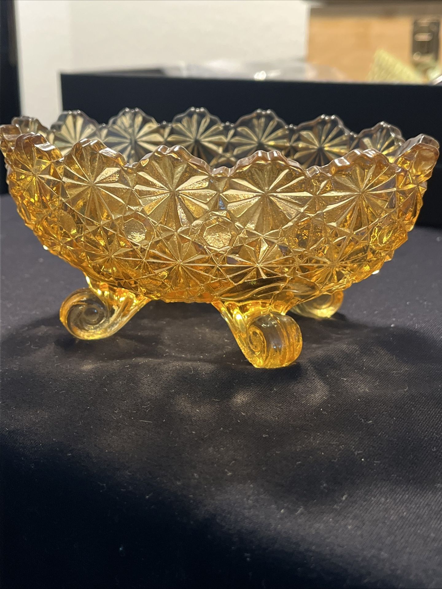 Vintage L G Wright Fenton Daisy And Buttons Amber Footed Oval Dish