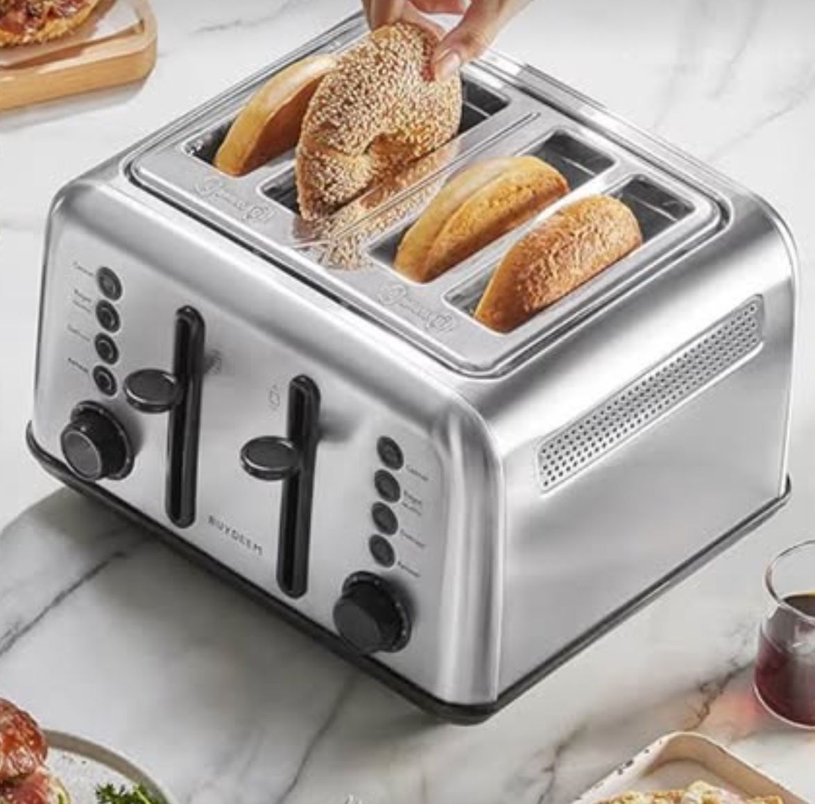 BUYDEEM DT640 4-Slice Toaster, Extra Wide Slots, Retro Stainless Steel with High Lift Lever, Bagel and Muffin Function, Removal Crumb Tray, 7-Shade Settings,Stainless Steel https://offerup.com/redirect/?o=aHR0cHM6Ly9hLmNvL2QvZDg0WlZNTQ==