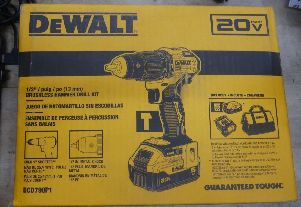 DEWALT DCD798P1 Brushless Hammer Drill Kit NEW .
