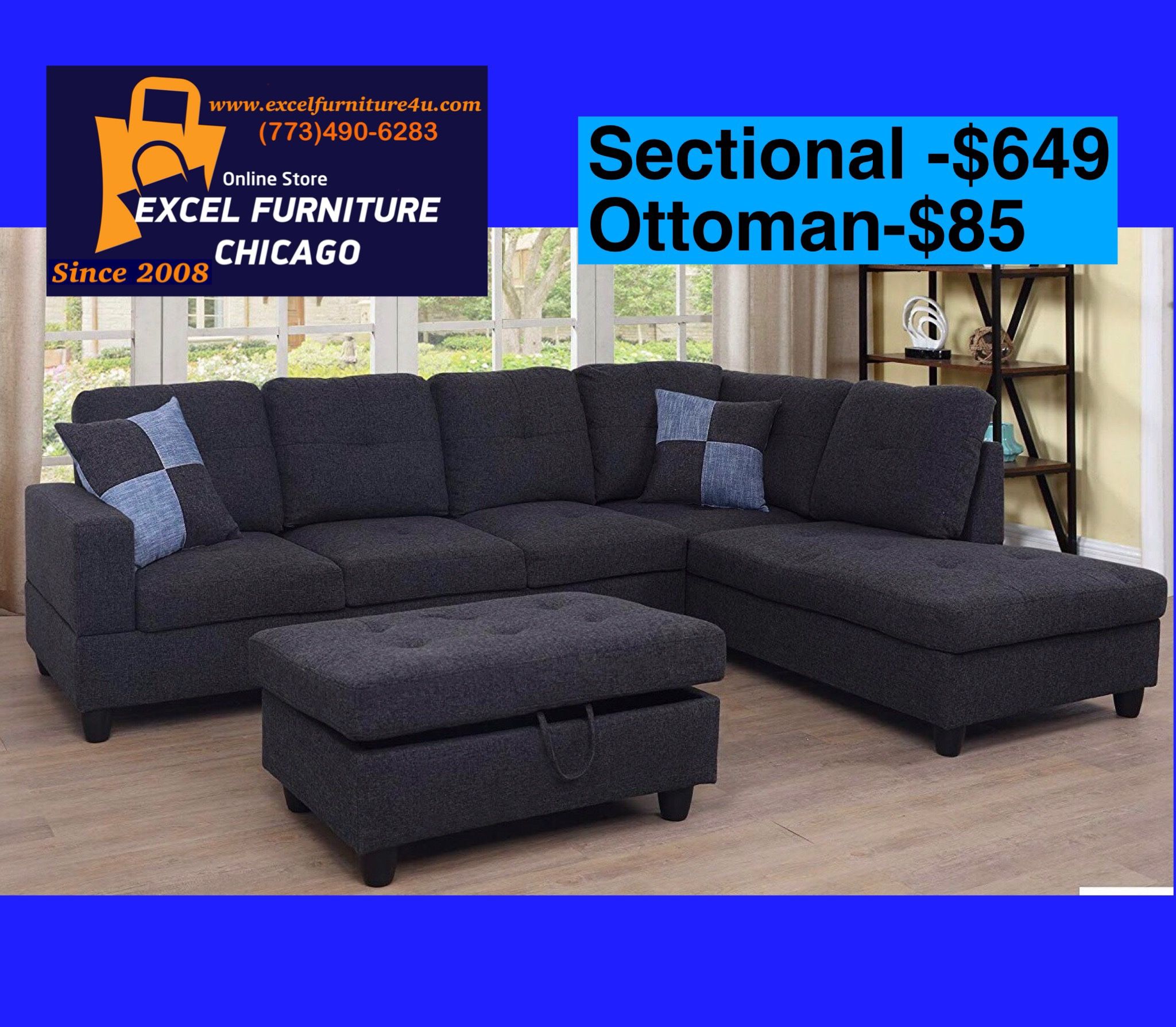 🎈🎈🎈GREAT PROMOTION 🎈🎈🎈 🌺BRAND NEW FURNITURE 🌺 Buy sectional with ottoman, get: FREE DELIVERY FREE TAX $734 —Sectional with Ottoman Cash or Zelle upon delivery EXCEL FURNITURE CHICAGO Online Furniture Store SINCE 2009 🌸excelfurniture4u. com🌸 Sectional, Sofa, Couch