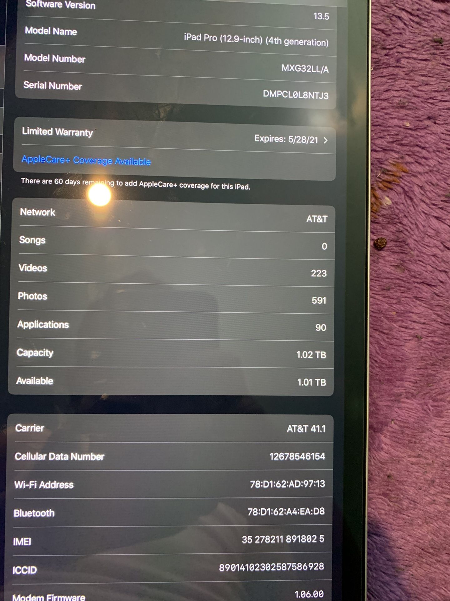 Att iPad Pro 4th generation 12.9, 1 terabytes 1300 obo check the retail before you offer me a price.