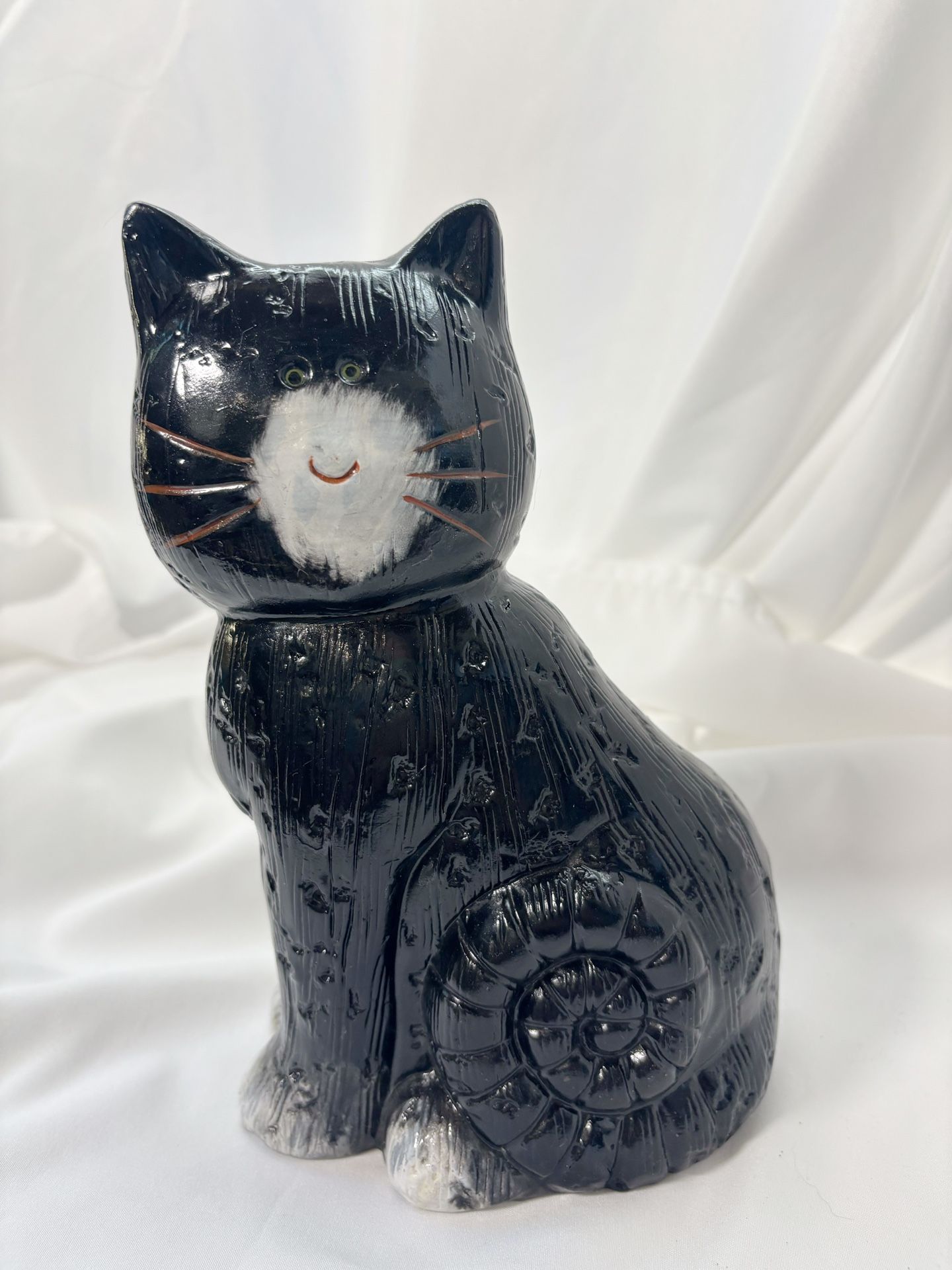 🐈⬛ Black Ceramic Folk-Art Cat Figurine — 10.5”
