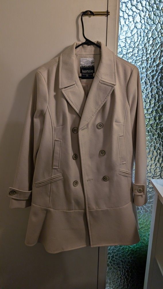 This is a brand new womens Kensie XL creme colored peacoat. Never worn, other than to just try on. My lighting wasn't the greatest but the color is more like the middle picture.