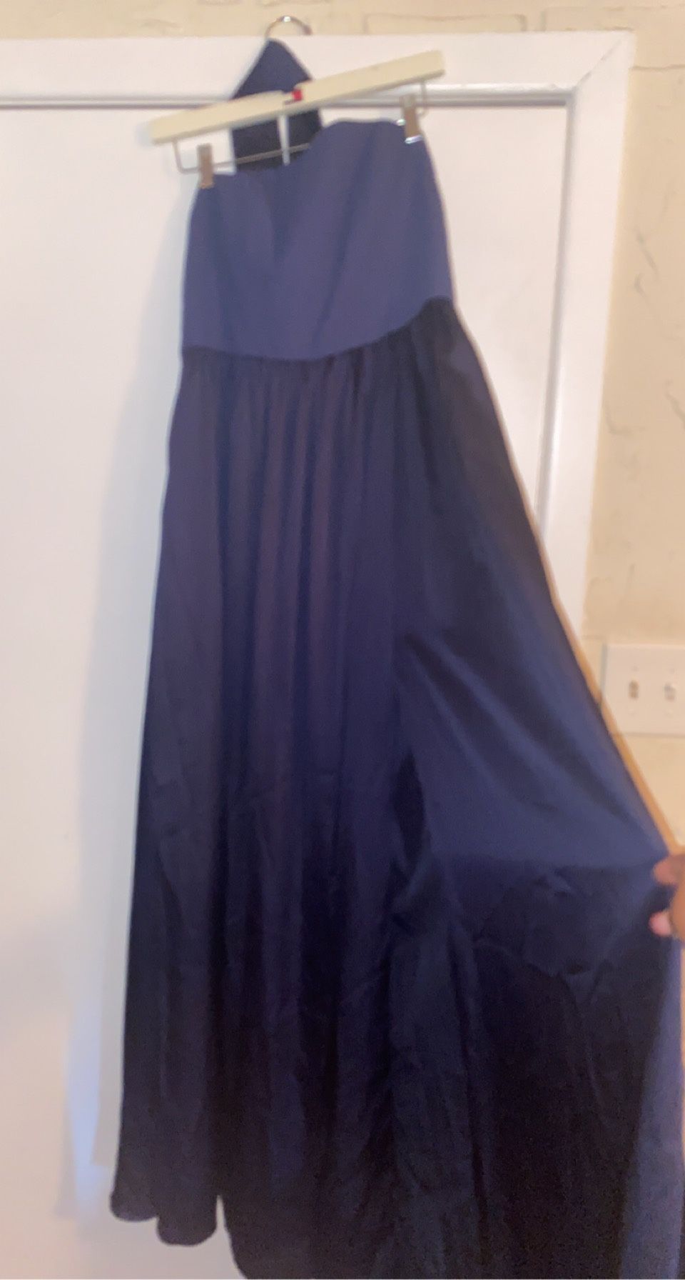 Blue maid of honor dress but it can be worn for any occasion. Strapless with a high split in the front.