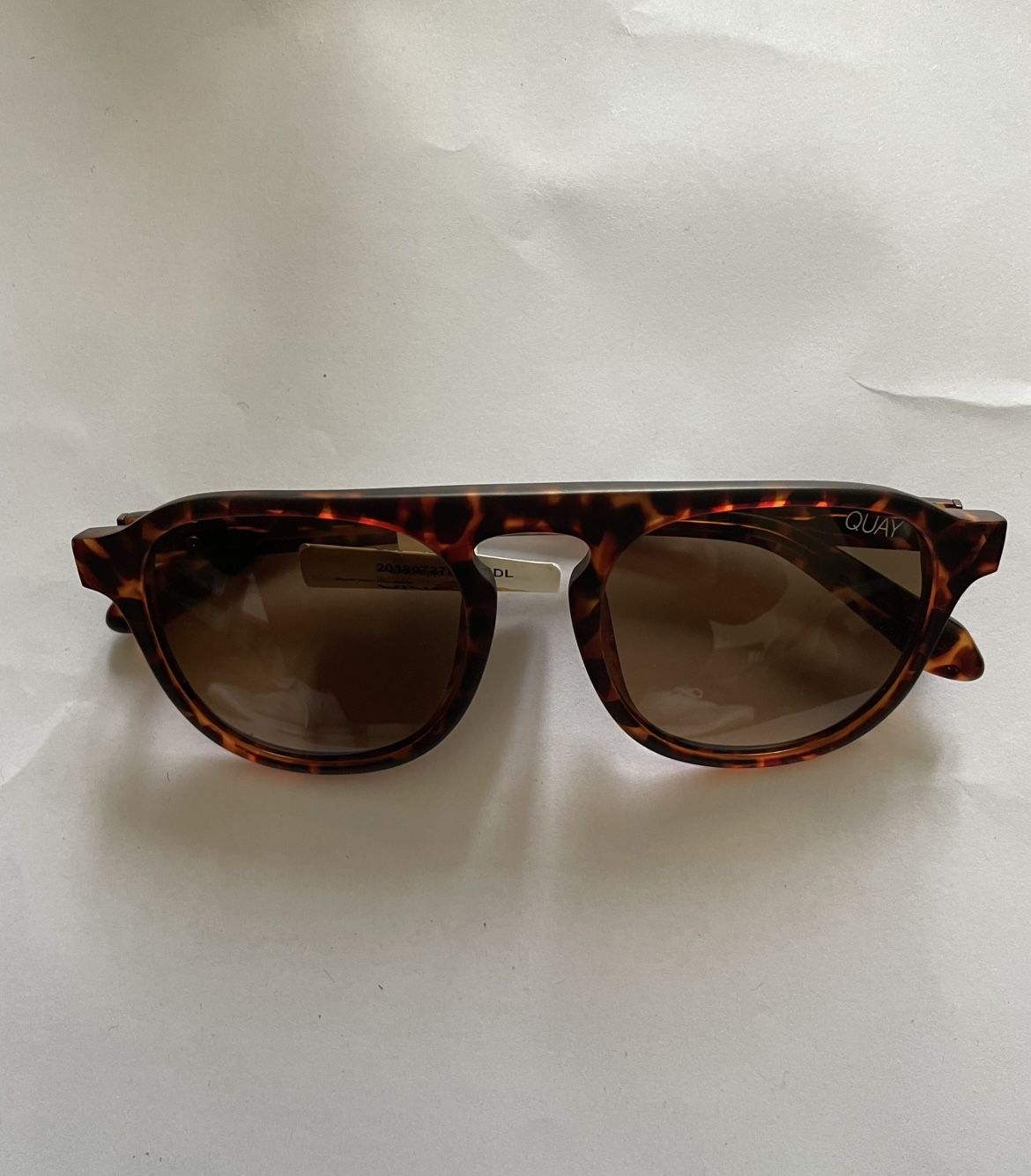 This is a pair of fashionable sunglasses designed by the Quay Australia brand. • Brand: Quay. • Model: QUS1870-C2. • Color (COL): mt brn demi as (matt