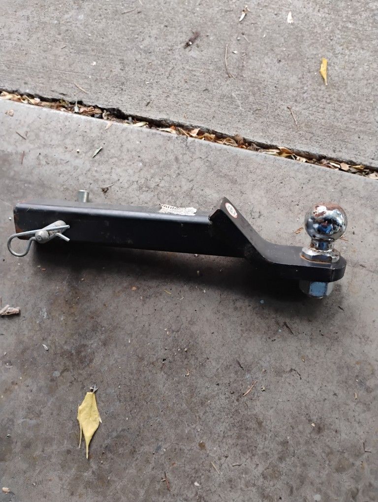 I have an extended trailer hitch. Has a 2 " ball. It's about 10" to where the drop starts and 7" from the pin to the drop. 750 lb tongue weight and 7500 lb trailer weight.