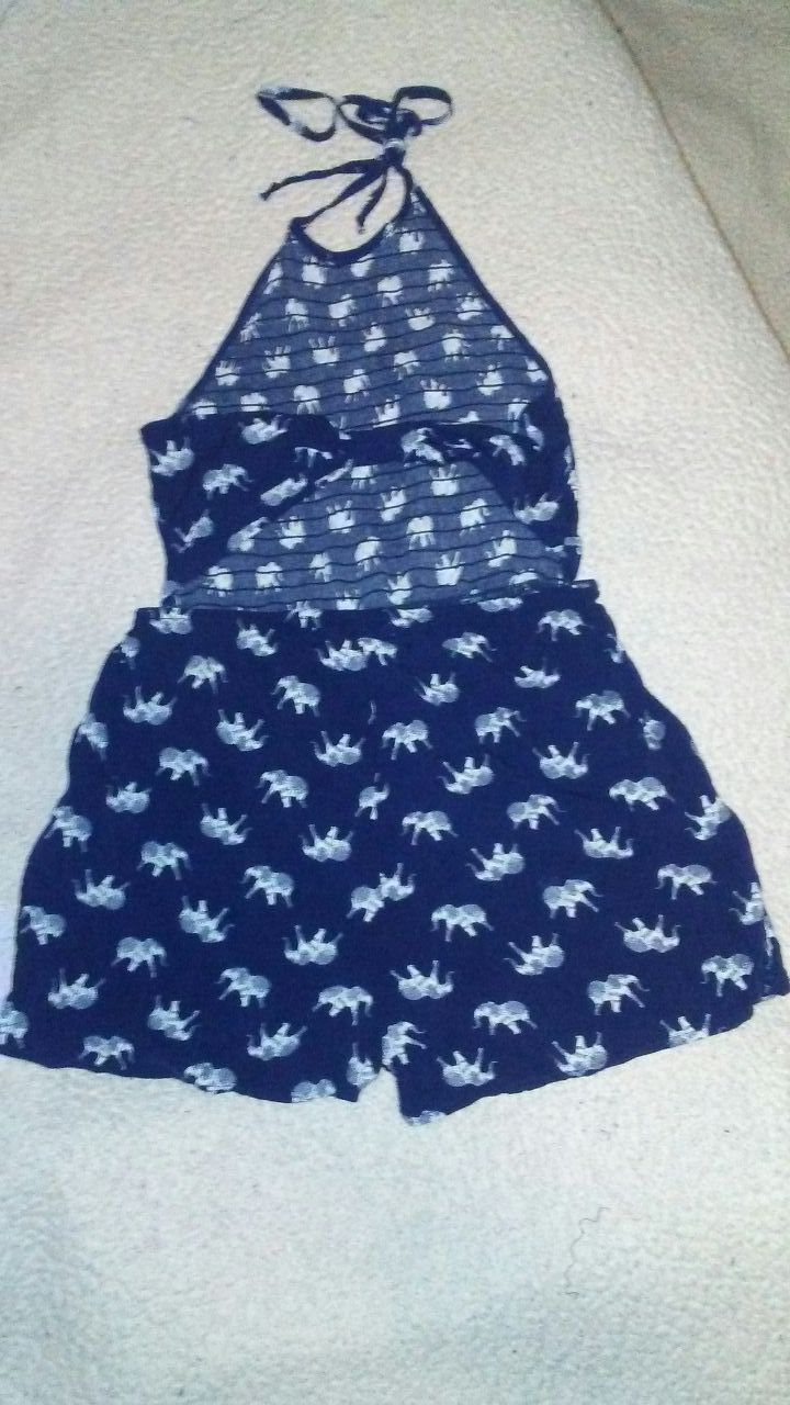 Bohemian elephant navy blue and white romper with pockets. Halter tie string top. Super cute thin material. Small to short for me!