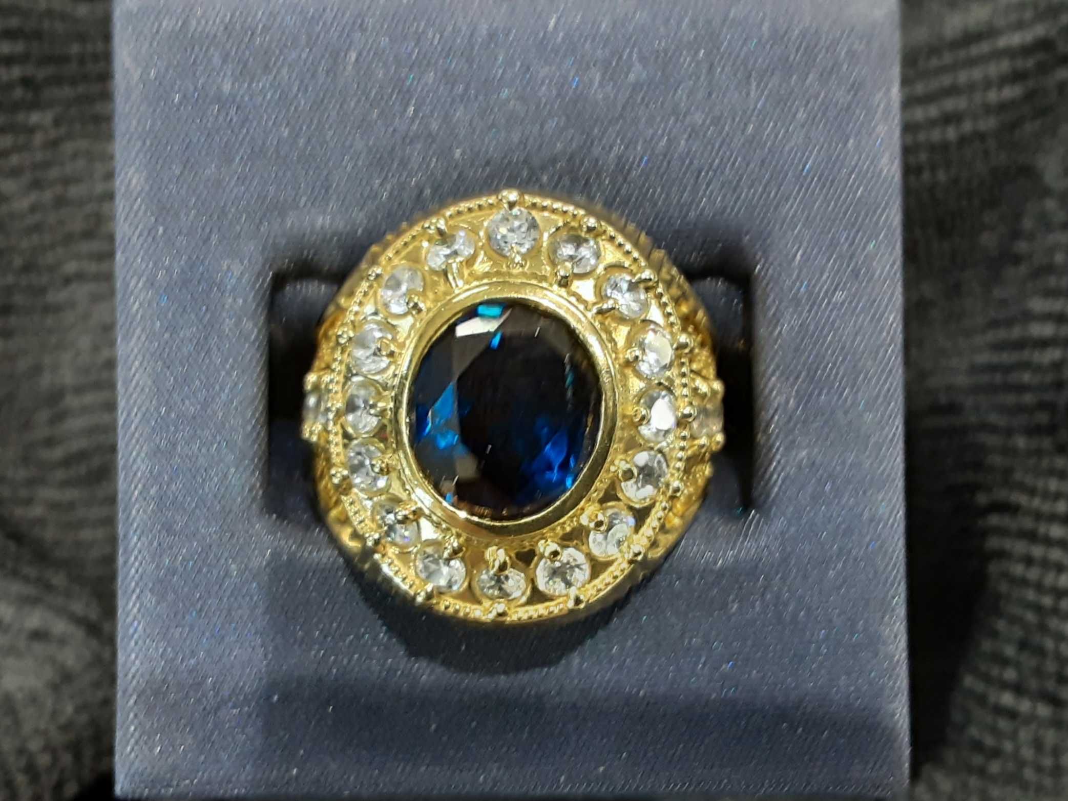 Overview Material Type Gold Weight (in grams) 4.9 Color Yellow Karat 10K (.417) Ring Size 10 Stone Details # of Stones Color Size Shape Quality 20 Cubic Zirconium 2 Round Promotional 1 Blue 20 Oval Promotional