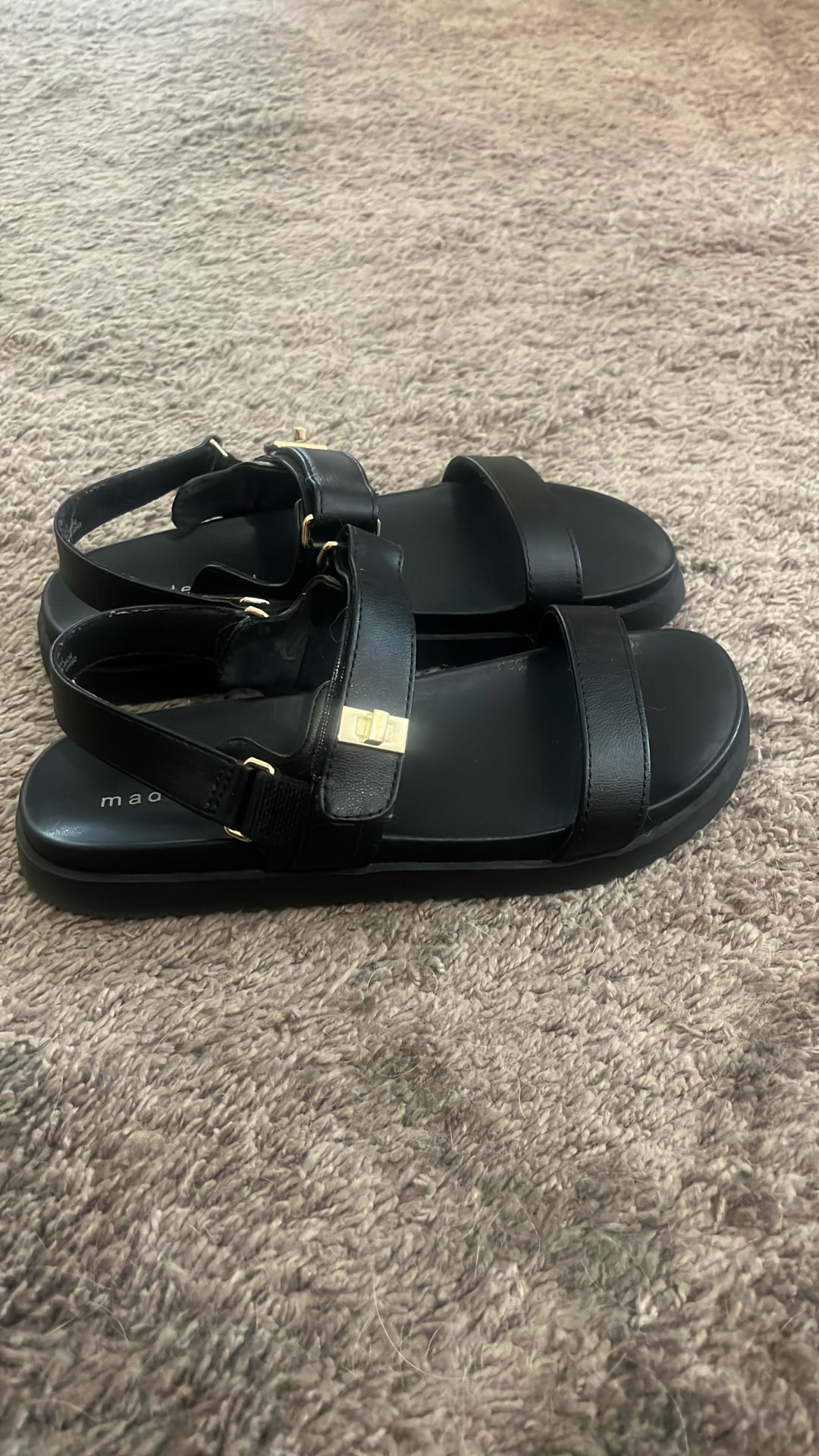 Black Velcro black sandals Big kid size 5 Basically brand new And and rainbow