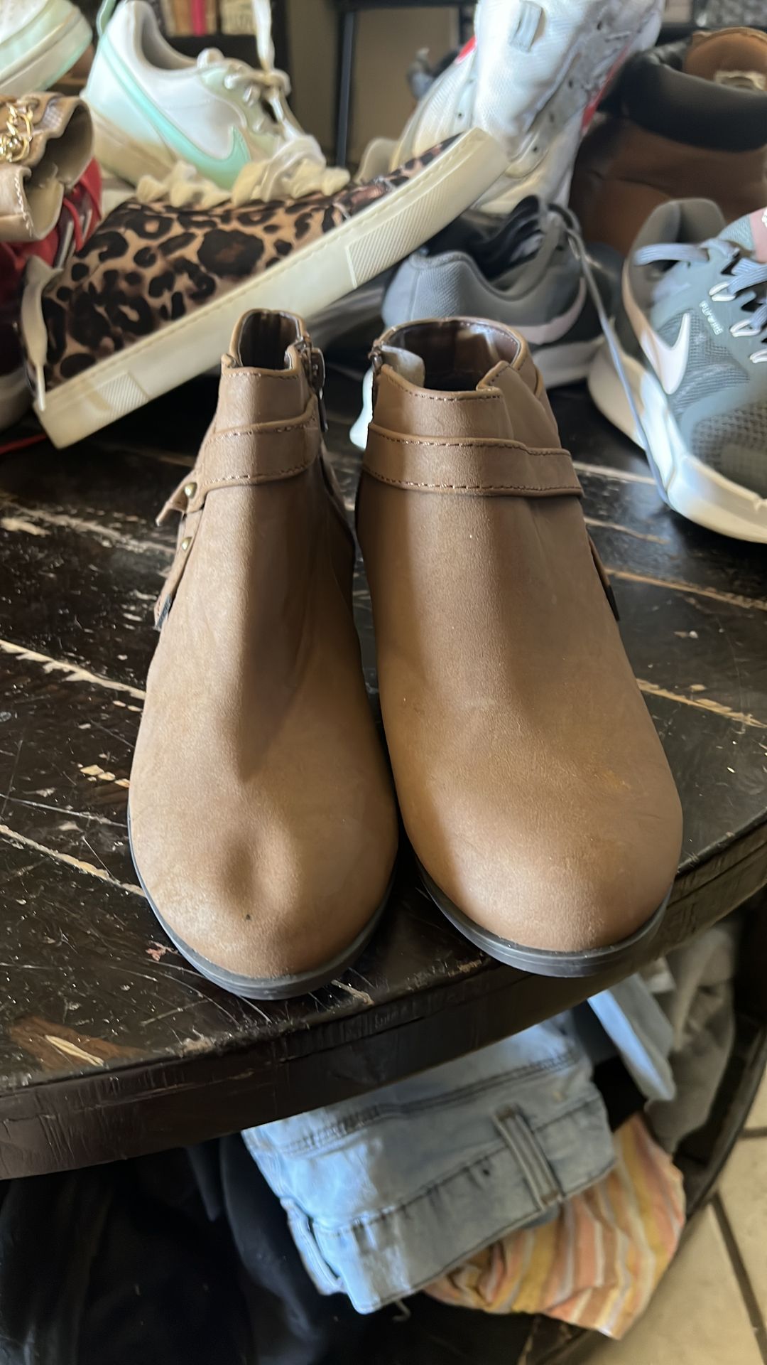 Cute dark brown boot with heel Never worn Closet clean out and don’t fit the kiddo! Size 2 Asking $10 Garage pick up