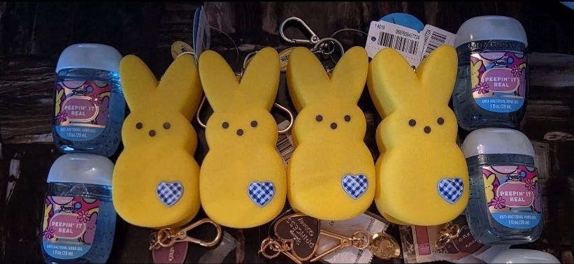 I have the hard to find bath and body works peeps yellow marshmallow bunny pocketbac holder, they are brand new with tags. I am asking $25 each they come with peepin it real pocketbac hand sanitizer.