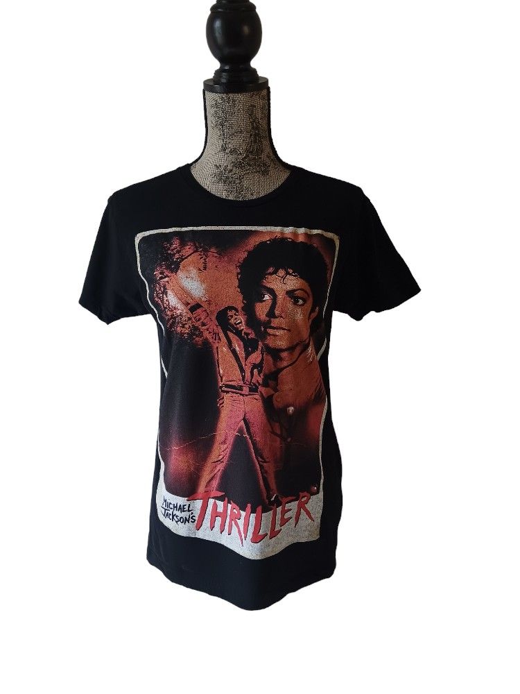 Michael Jackson Thriller women's black short sleeve graphic t-shirt size S.Pre owned and in excellent condition from a clean and smoke free environment.All measurements are revealed in the photos.Thank you for viewing this item. 136