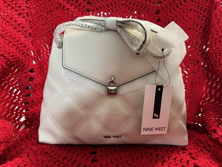 Brand new white Nine West purse with cute lock front! There are many pockets with zippers ! Clean and brand new still stuffedwith original packing paper