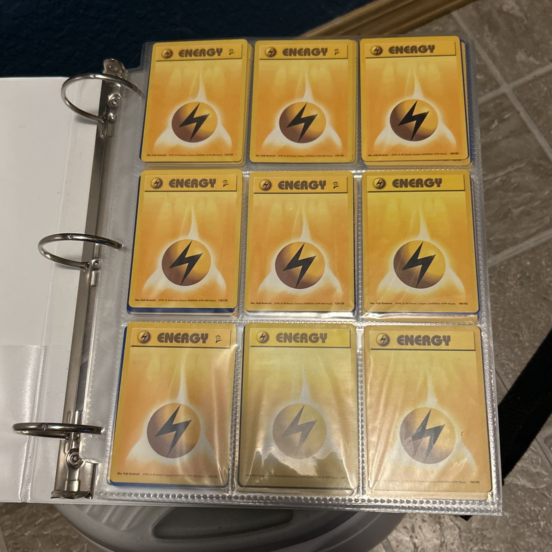 Here are a bunch of Pokémon cards from the late 90s early 2000s. They’re all pretty much organized all in good shape. The entire binder is full.