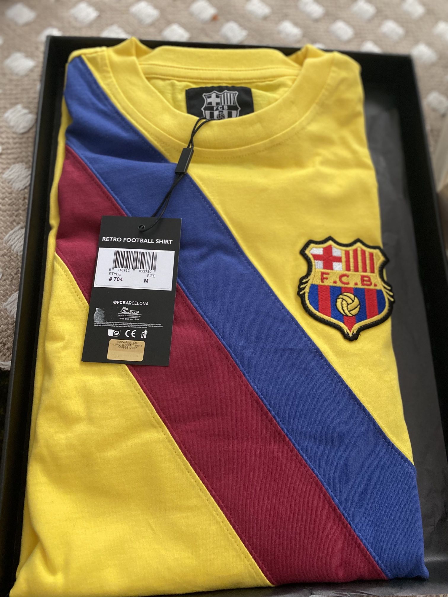 Retro Long Sleeve purchased in Barcelona, Spain at the FC Barcelona stadium in 2016 Never been worn, in original box