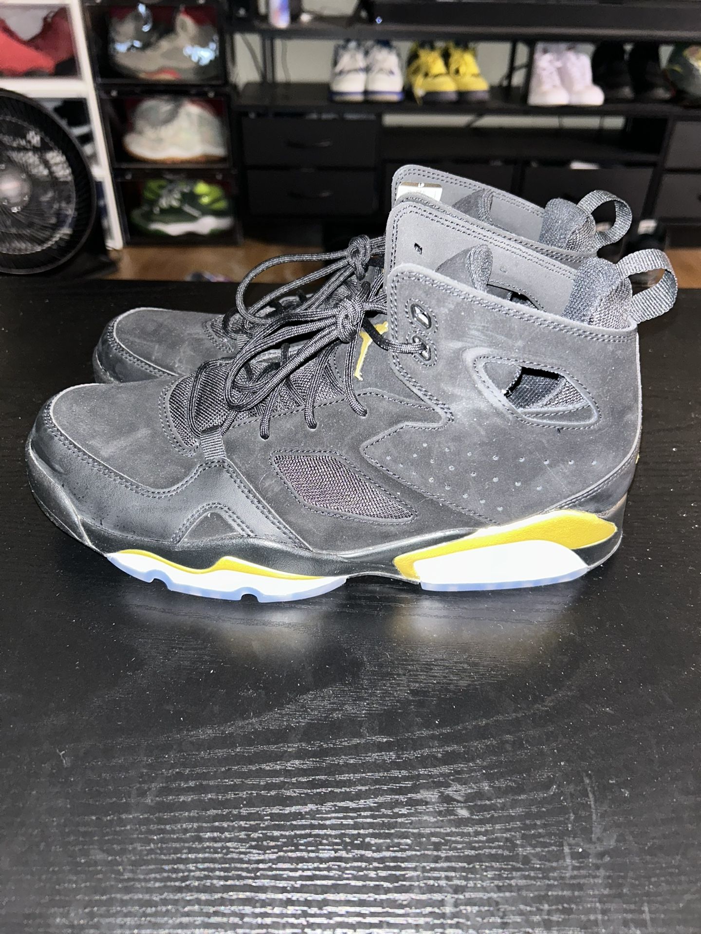 New without box Size: 9.5 Product Details Style DC7329-007 Colorway Black/Metallic Gold Retail Price $140 Release Date 10/26/2021 Product Description The Jordan Flight Club 91 Black Metallic Gold (2021) is a sleek and stylish sneaker that combines classic design elements with modern flair. This men's shoe features a predominantly black upper crafted from premium materials, including smooth leather and durable synthetic overlays. The iconic Jumpman logo adorns the tongue and heel, while metallic gold accents on the midsole and branding add a touch of luxury to the overall aesthetic.