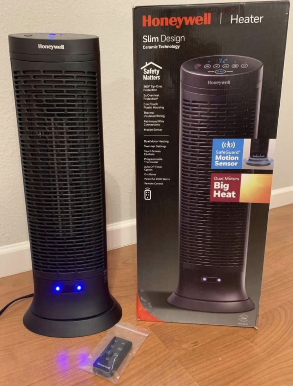 Slim design, ceramic technology, programmable with a remote, auto rotating space heater with many other functions.