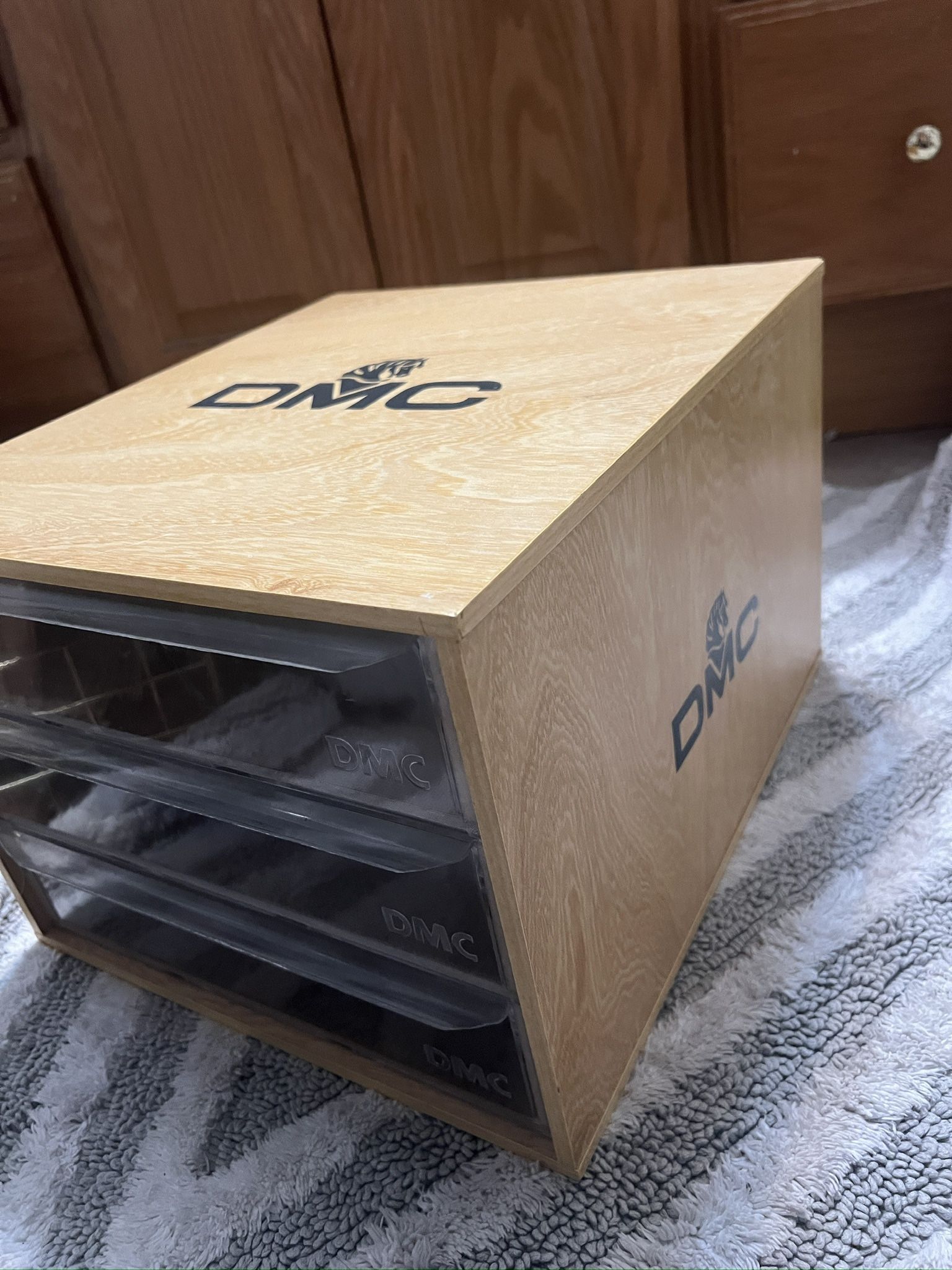 DMC Embroidery Thread Floss 3-Drawer Wood Storage Box Cabinet ONLY No Dividers-Made in France