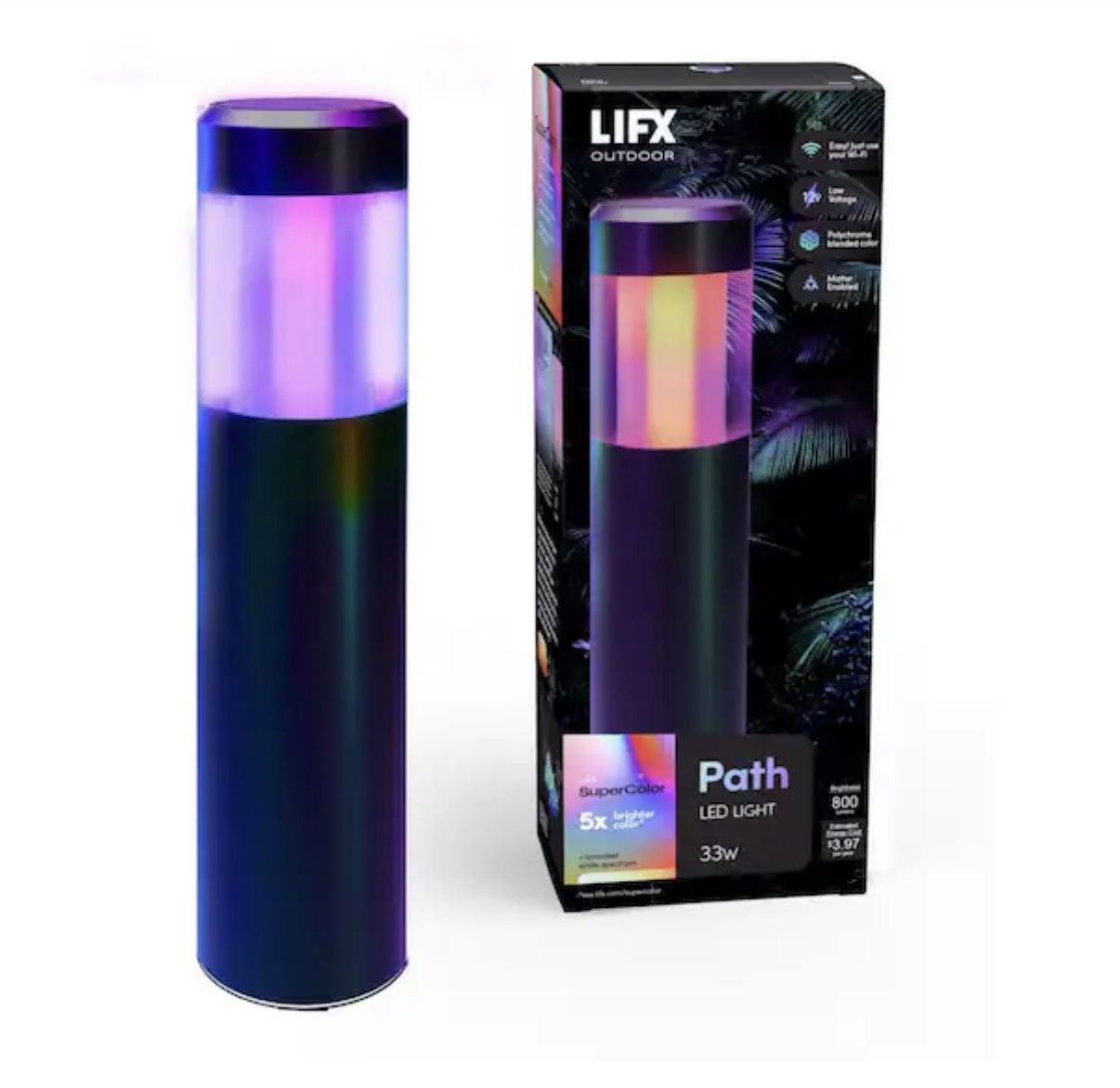 Low Voltage Black RGB Integrated LED Smart Wi-Fi Round Landscape Path Light, Works with Alexa/Hey Google/HomeKit/Siri. retail price $100 our price $60 and we have 10 pcs each for $60 LIFX Model # LFX/LV/PATH/RND L-4501