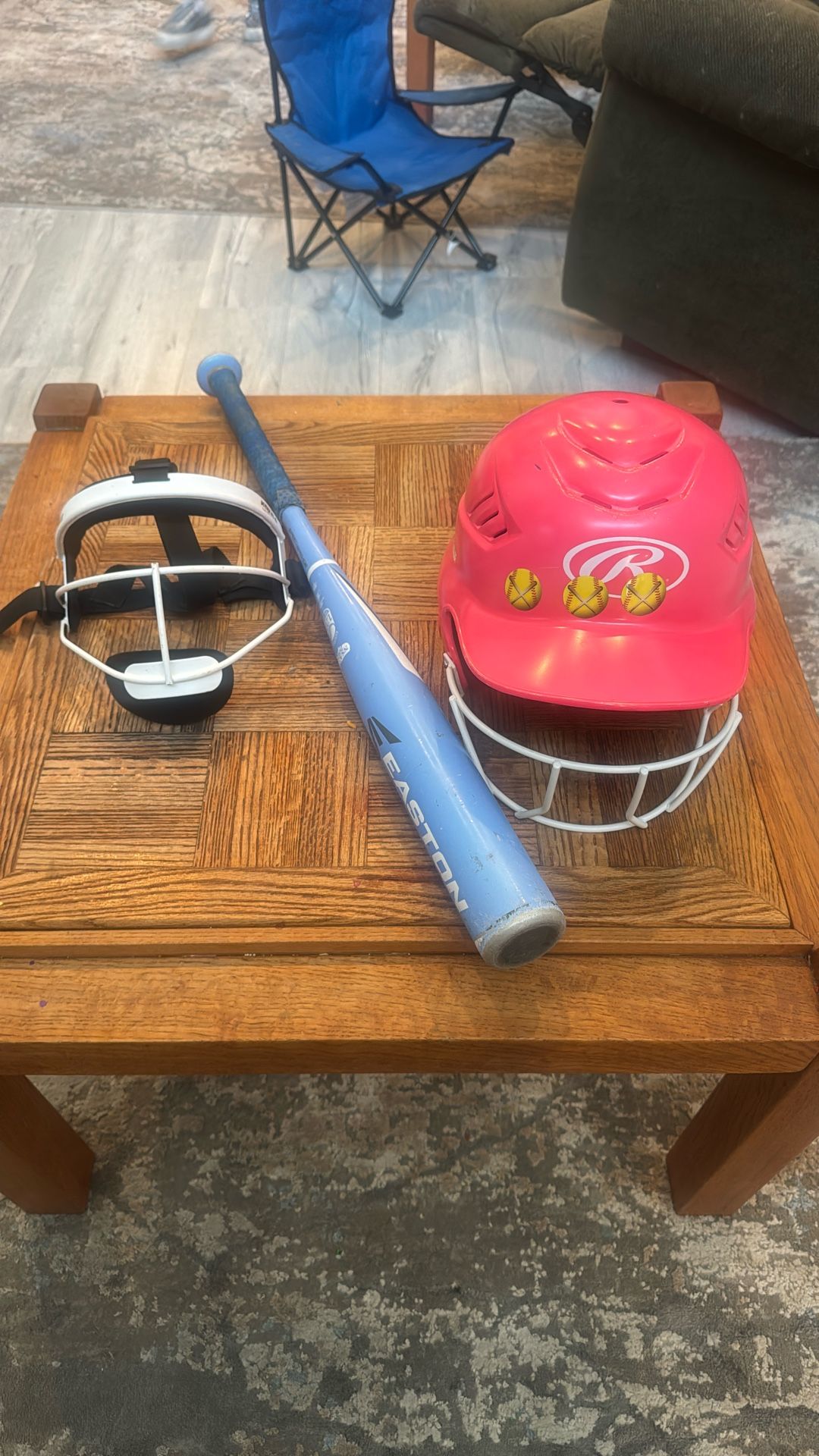 We have a Rawlings helmet, rip it face mask and an Easton Fs200 28” softball bat. Great for a player starting out, all gear was only used for a season, not much wear and tear.