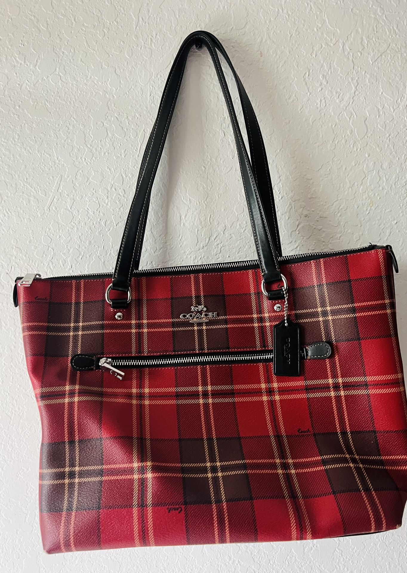 Authentic Coach City Zip Shoulder Bag in the limited-edition Red Tartan Plaid coated canvas with smooth black leather trim and silver hardware (Style No. G2278–CC939).Classic structured design with zip-top closure, exterior front zip pocket, and interior zip + multifunction slip pockets for easy https://offerup.com/redirect/?o=b3JnYW5pemF0aW9uLkJsYWNr fabric lining. Made in the Philippines — verified authentic production origin for this model.Comfortable double handles with approx. 10” shoulder drop for easy everyday wear.Shows minor corner wear on bottom edges (see photos); otherwise clean inside and out.Perfect holiday, winter, or everyday statement piece — festive, durable, and eye-catching.Measurements: 16” L × 11” H × 5” W Retail: $295