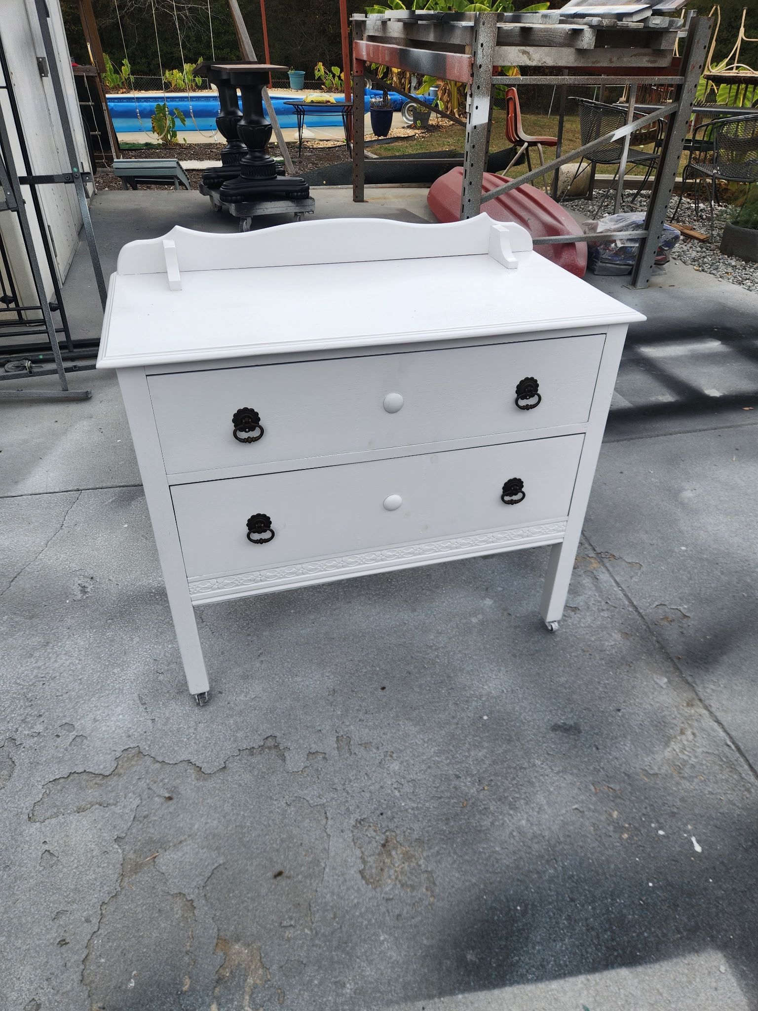 Refinished antique style short dresser in white. Perfect for the entry space near a door to the house or bedroom. Spacious drawers, clean and in working condition. Solid wood Measurement: 36x34x18 $150 cash only. We deliver for a fee or pick up in Stockbridge