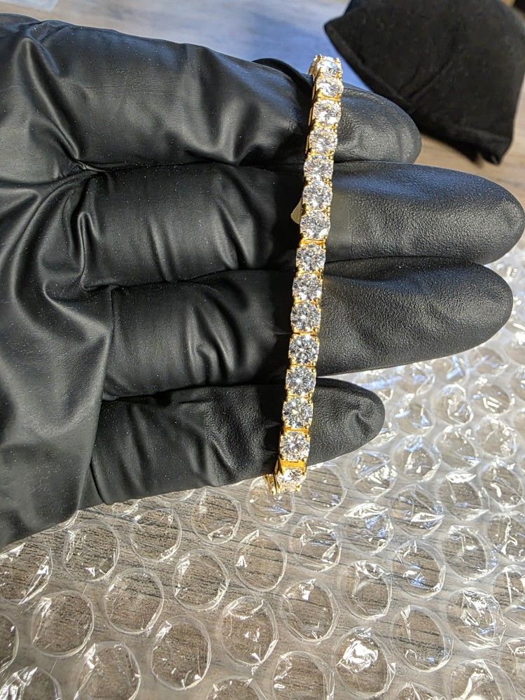 SS925 Moissanite Diamonds 8" 3.5mm Gold Over Tennis Bracelet