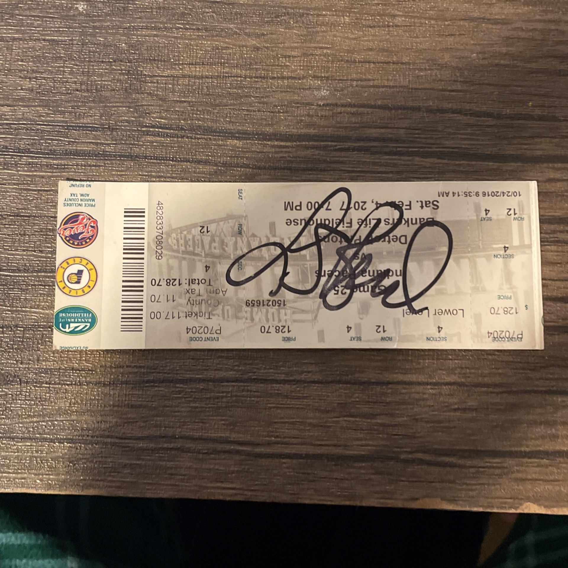 Signed Larry Bird ticket 2/4/2017 Pacers VS Detroit Pistons (Larry bird was the owner of the pacers at the time)