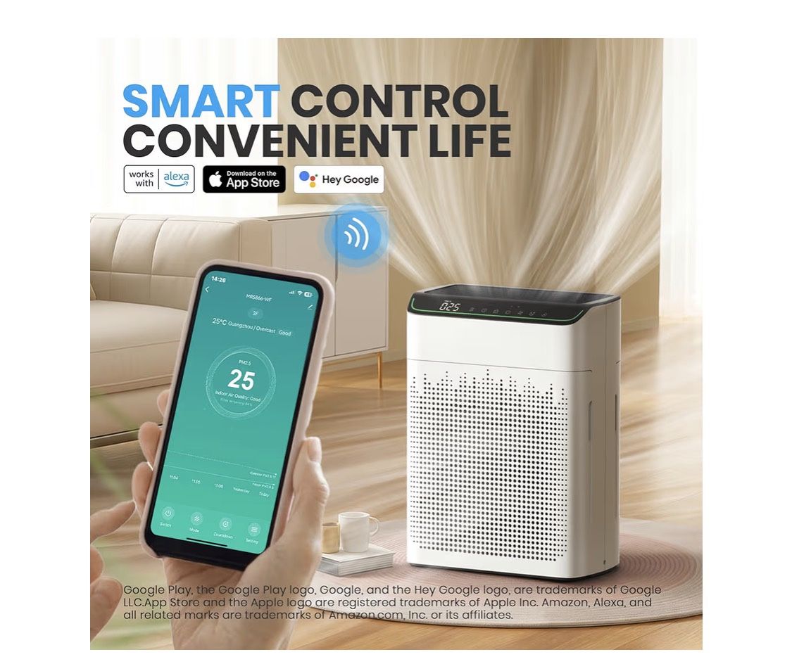 Air Purifiers for Home Large Room Up to 1690 ft² Double-sided Air Inlet Smart WiFi Alexa Compatible PM 2.5 Air Quality Monitor for Smoke and Odor 23dB Quiet 1 Pack+2 Pack HEPA Filters White