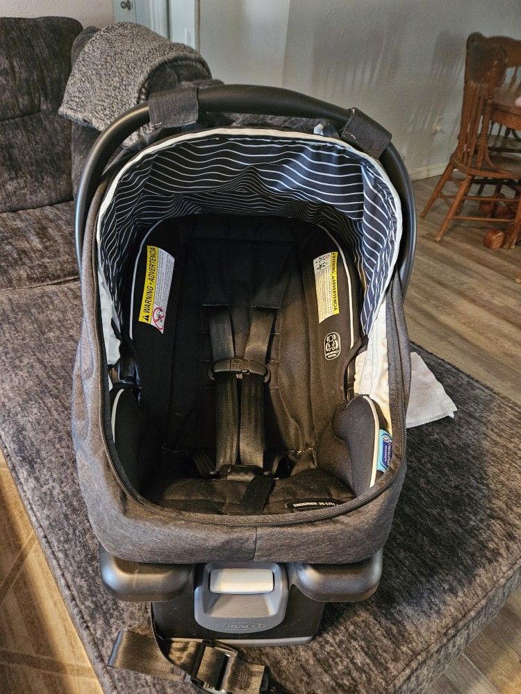 Comes with cover (as shown). In great condition. Only used 10 months before upgrading to new car seat. I still have user manual. Accident free. Infant car seat helps protect rear-facing infants 4-30 lb and up to 32" Lightweight infant car seat weighs only 7.2 lb 4-position adjustable base helps ensure an accurate install and helps keep baby comfortable as he or she grows Easy-to-read level indicator
