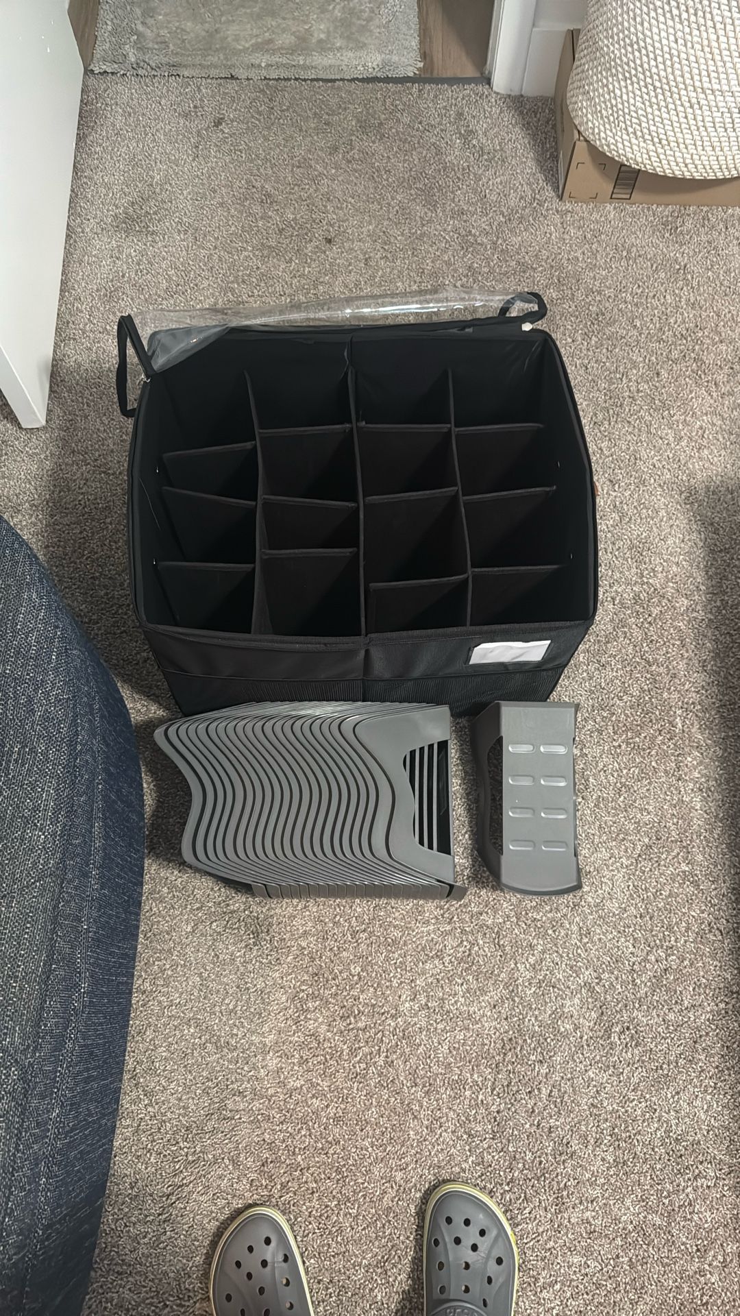 Caja negra organizadora para 16 zapatos + 20 Soportes de plástico para organizar zapatos de pares