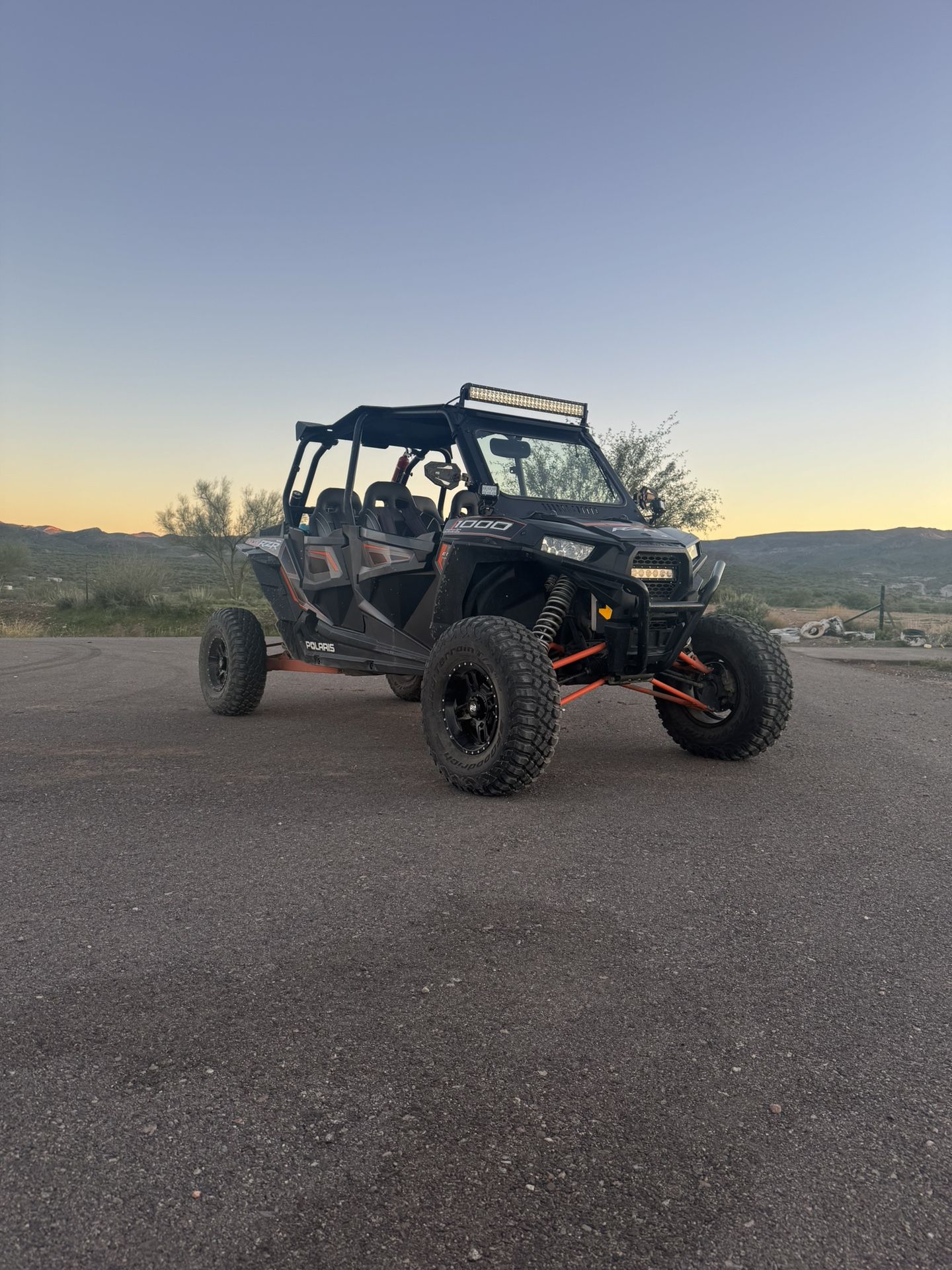 I have a beautiful 2014 rzr 1000 XP4 She has very low miles for the year. (2500 mi.) Custom after market seats and 5 point harnesses The Rzr is Stock performance wise. And has always been up to date on services. Brand new 30in BFG mud tires. There is also a Stereo system that works perfect and 360° LED lights