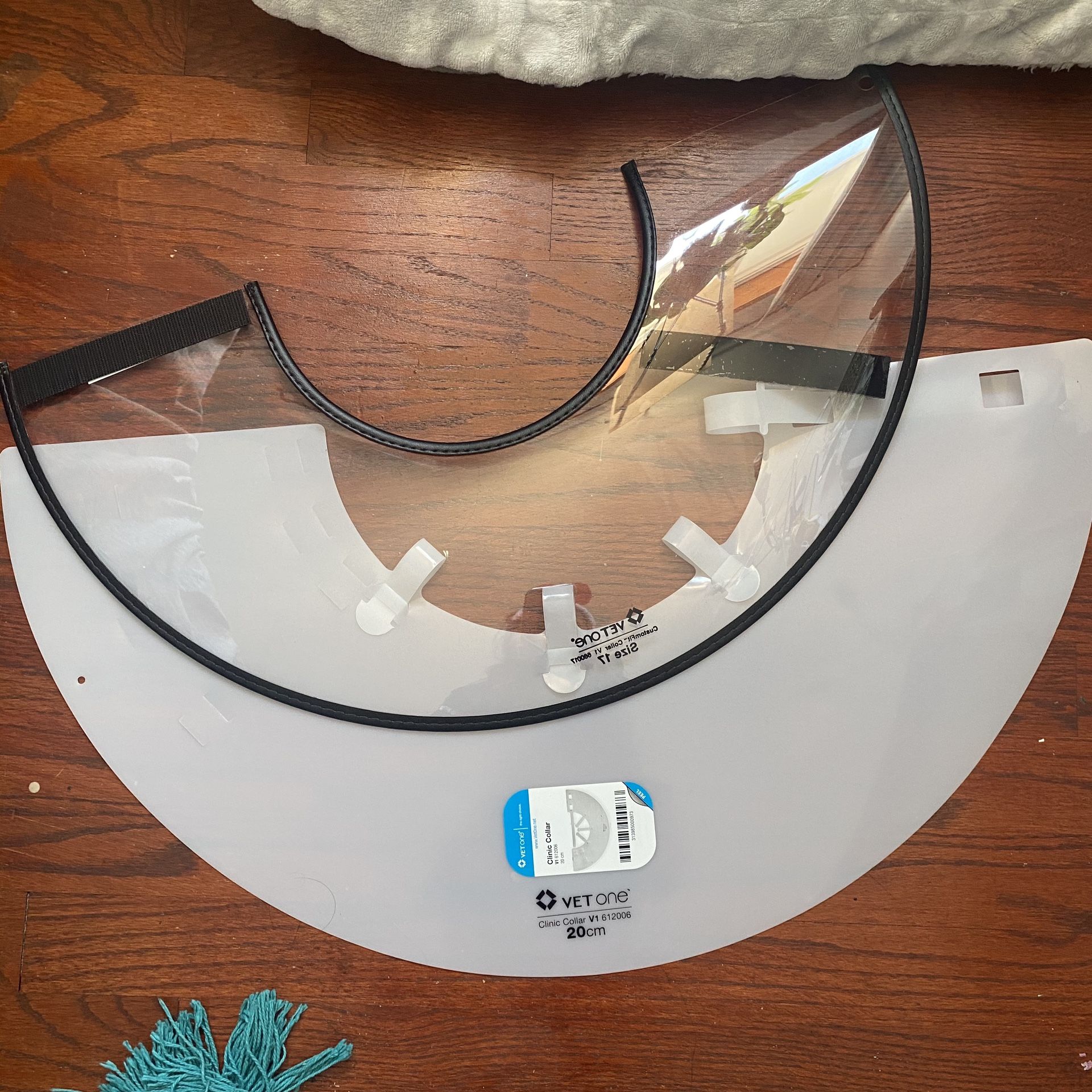 There are two to choose from: a clear see- through and a white foggy one. Let me know if you’d like both or just one of them. They are for smaller pets. Sorry not sure how the sizing works for the cones. We used them on my havanese puppy when she was fixed. She was 8 lbs at the time. Please message me if you want me to take exact measurements of the circumference