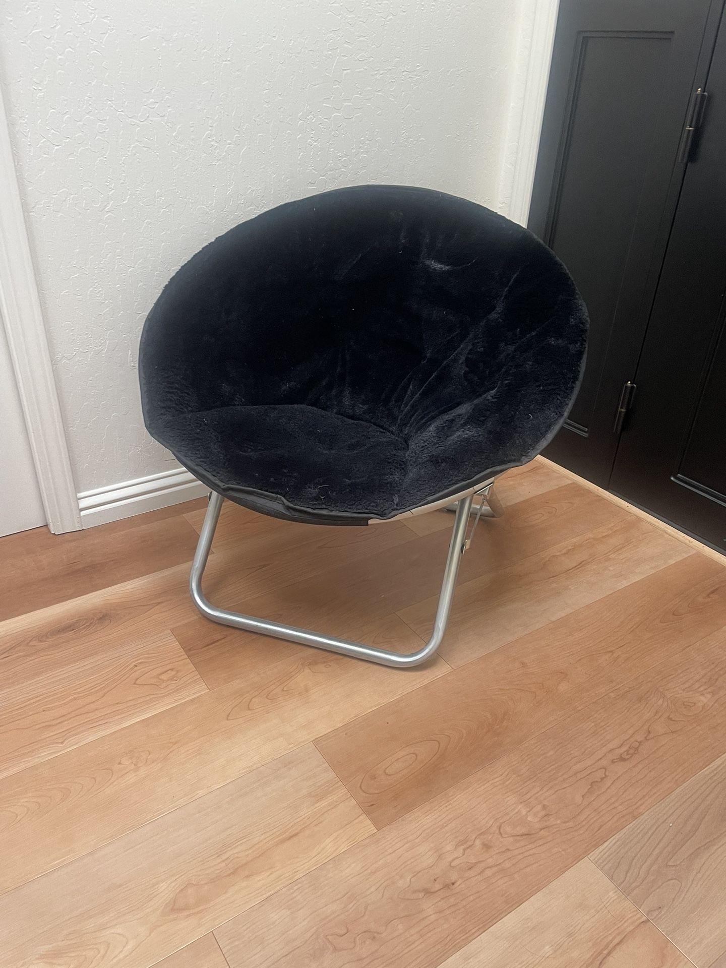 Round chair. Folds flat. Brand new. 30 inch diameter. I have five of these. Take one or take all.