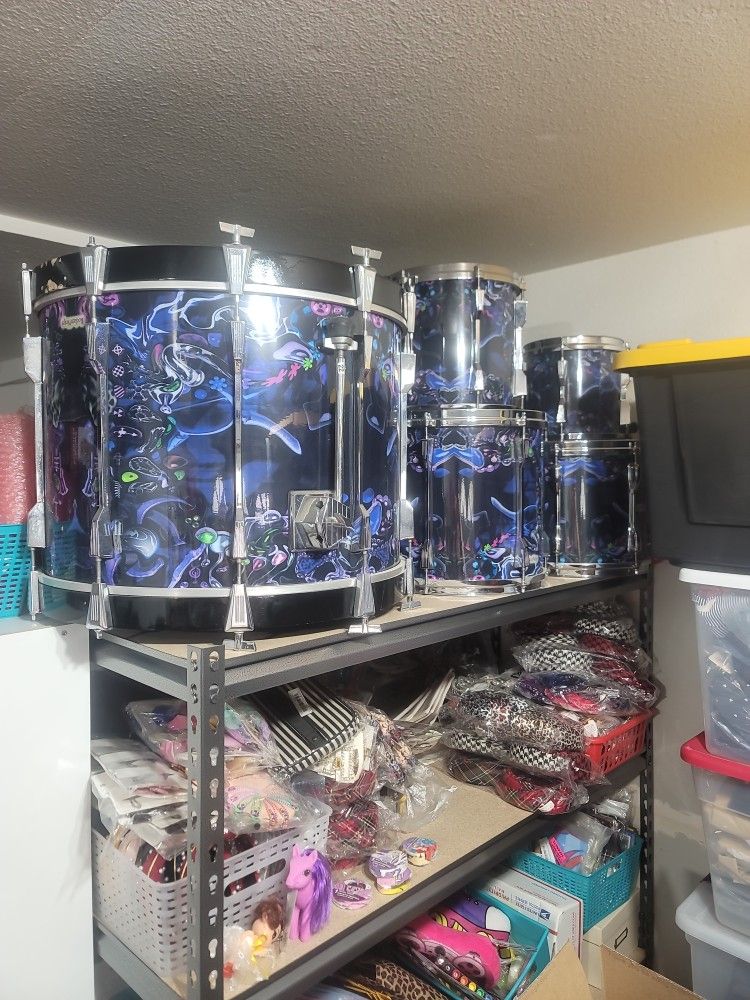 Tama Rockstar on suspension mounts 3 toms 2 floor toms bass and a dw snare....no hardware but does come with gilbralter rack with mounts....I will post rack and gear when I pull them out....asking 500 obo