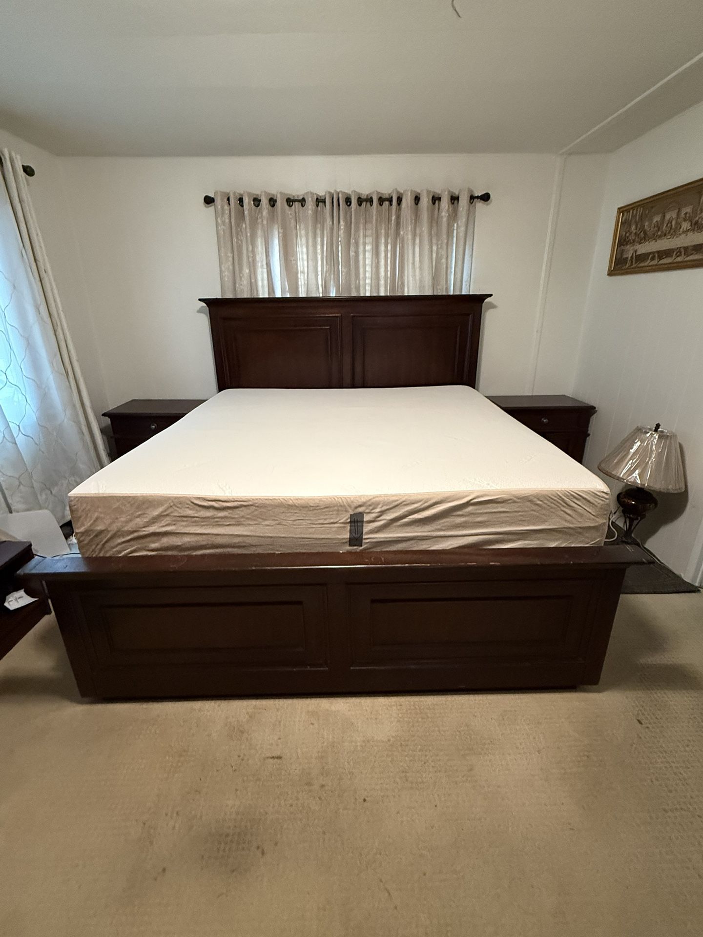 Comes with head and foot Board 2 night stands. Temperpedic mattress
