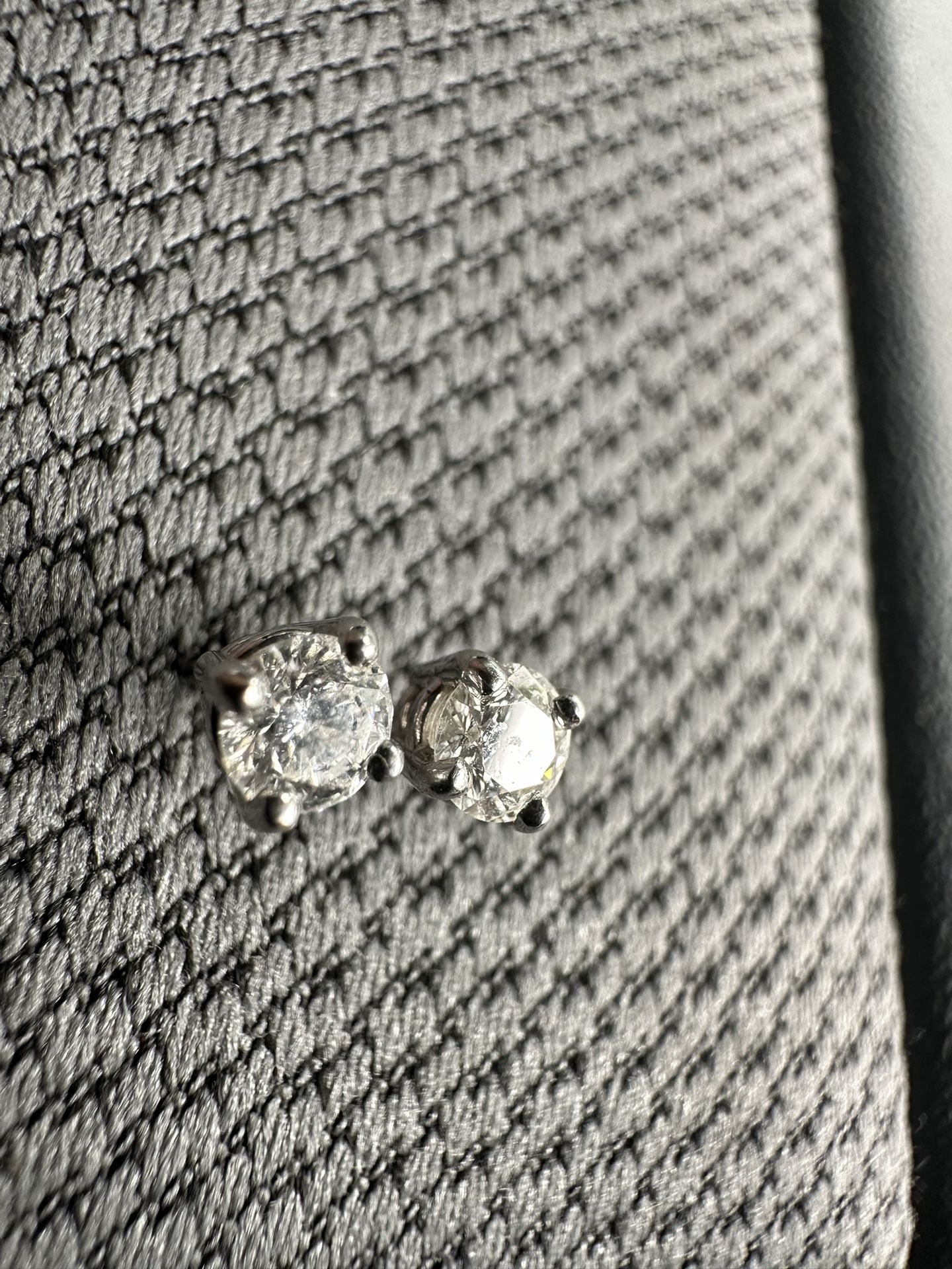 Don’t wear earrings anymore, they are like brand new and they shin when the suns on them they are real diamonds