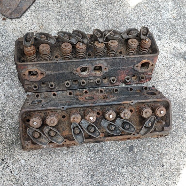 A pair of Sbc heads off a 283. Will need complete overhaul. 250 obo part # (contact info removed). I have a pair of Sbc valve covers not matc hing as you see 50 obo, a 63 Impala battery tray not cancered out 25 obo. A fan off a 63 Impala 45.00 obo will fit any application, An original 63 Impala driver side exhaust manifold . $100.00 obo A 63 Impala 3rd member sold as is with everything on it.make offer on the parts.