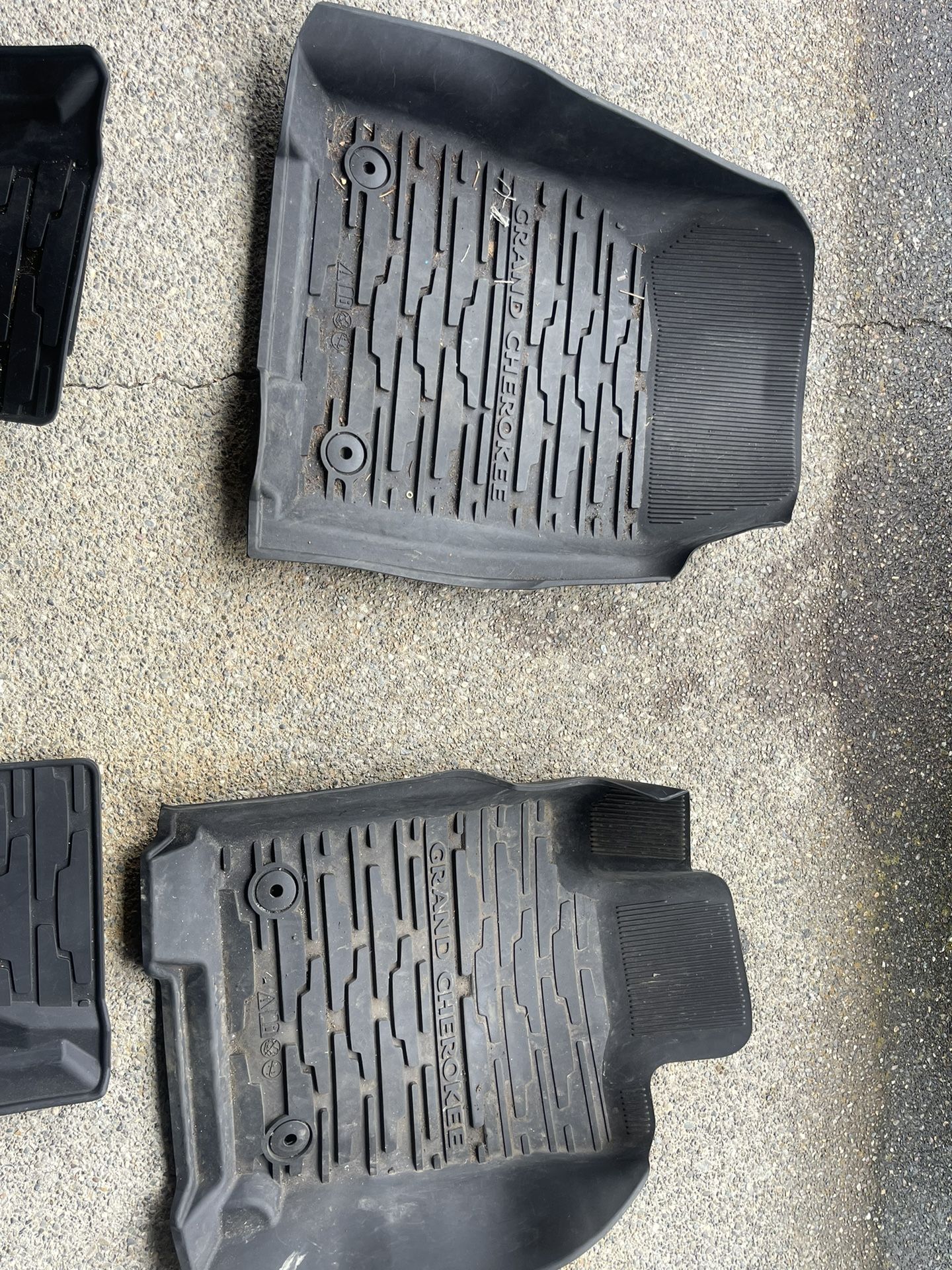 The floor matts came out of a 2017 jeep grand cherokee. Theyre in excellent shap just need a slight cleaning. That can be done at time of purchase. It’s all there from the front the back seat and the trunk liner. We no longer have the jeep so we dont need these anymore. Im asking $150 for the set. It’s better than weather tech by far!!
