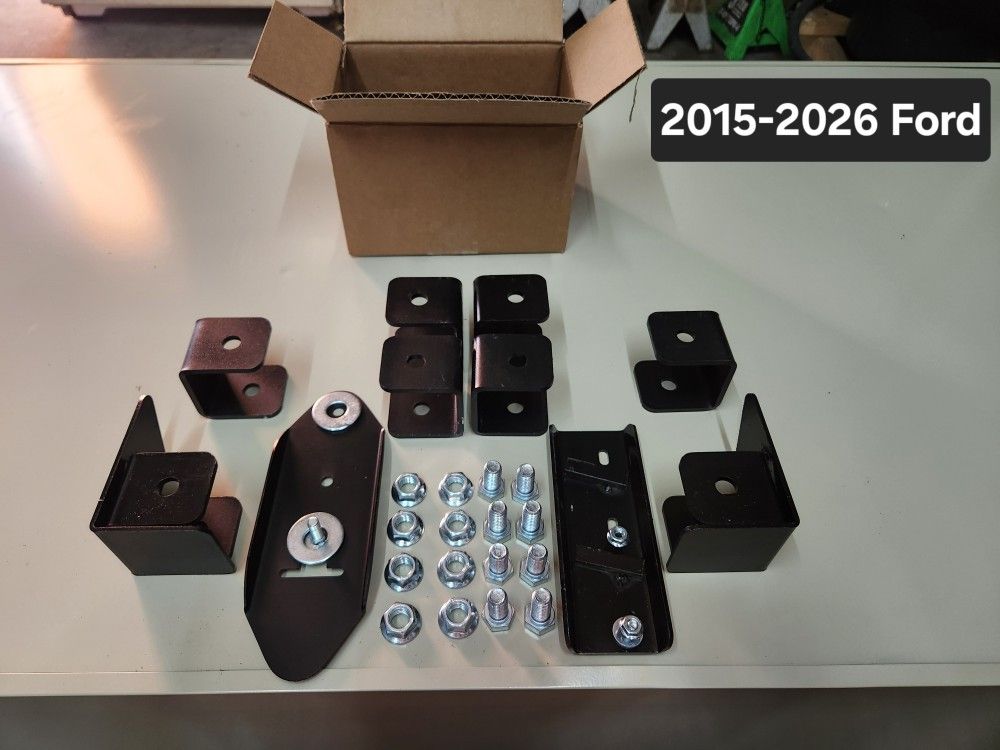 We now offer a rear seat lift kit for the 2015-2025 Ford F-150 & 2017-2025 super duty F-250 F-350 F-450 Supercrew 4 door. For those interested in going with a taller sub box, example for forward front firing 10-inch subs. or bigger 8-inch subs. that need more airspace like digital designs 2508, sundown audio x8 v4 or Z8 Nemesis audio team 8 american bass godzilla etc, this is the solution to achieving the needed space for a taller sub box. 2.5 inch rear seat lift kit for 2015 through 2025 F-150 supercrew or supercab trucks. The kit raises the rear seat 2.5 inches to increase the usable area under the seat, for sound systems or if just wanting more additional storage area. Our locally made kit here in Dallas TX. Black painted formed steel brackets, all nuts, bolts and additional hardware that are needed for the installationis included. Typical installation time is less than an hour and a half using a few tools, torx, ratchet, wrenches. There are videos on Youtube demonstrating how to remove seats and install kit This product does not work with Super Cab model trucks Ahora ofrecemos un kit de elevación del asiento trasero para el Ford F150 Supercrew 4 puertas del 2015 a 2025 y 2017 a 2025 Super Duty F-250F-350 F-450 4 puertas grandes y cabina y media Para aquellos interesados en optar por una caja de subwoofer más alta, por ejemplo, para subwoofers de 10 pulgadas con disparo frontal hacia adelante, o subwoofers de 8 pulgadas más grandes que necesitan más espacio de aire, como Digital Designs 2508, Sundown Audio X8 v4 o Z8 Nemesis Audio Team 8 American Bass Godzilla, etc., esta es la solución para lograr el espacio necesario para una caja de sub más alta Kit de elevación de asiento trasero de 2.5 pulgadas. El kit eleva el asiento trasero 2.5 pulgadas para aumentar el área utilizable debajo del asiento, ya sea para sistemas de sonido o si simplemente se desea tener más espacio de almacenamiento adicional. Nuestro kit fabricado localmente aquí en Dallas, TX. Soportes de acero moldeado pintados de negro, todas las tuercas, tornillos y hardware adicional necesarios para la instalación están incluidos. El tiempo típico de instalación es de menos de una hora y media utilizando algunas herramientas: torx, trinquete, llaves.