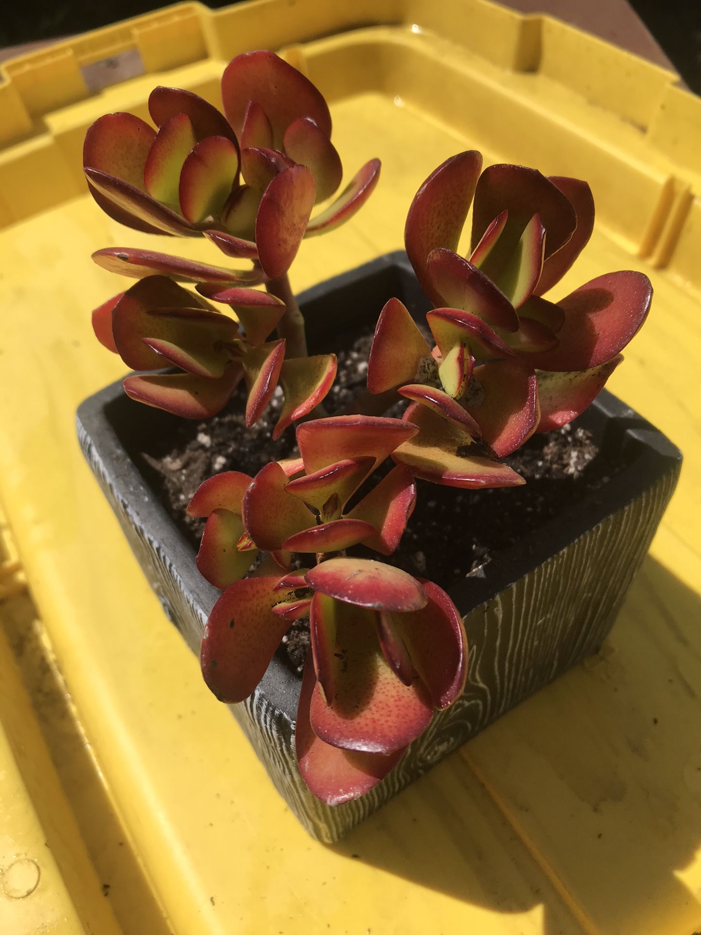 Beautiful jade with red/green leaves. Some Aeonium mixed in a few of the pots. All rooted plants. 1 Purple Heart. Ceramic pots. Elephant planter has chip at tip of trunk. See pic. Pick up in Hayward near Cal State East Bay.