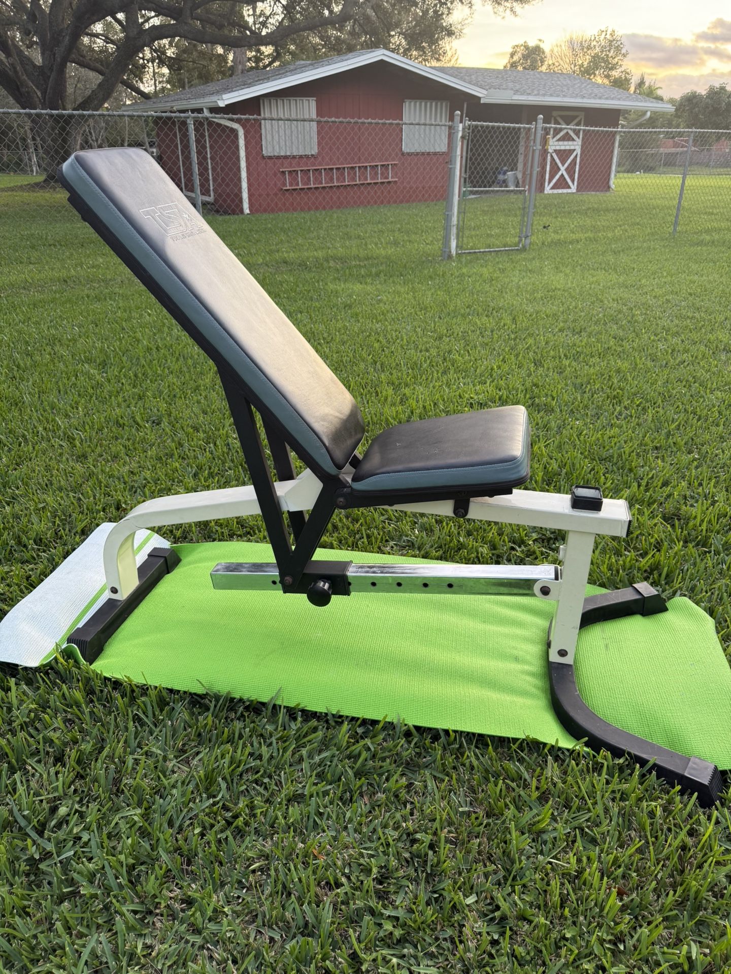 This is a heavy duty fitness bench by TSA (Total Sports America). It easily adjusts between Flat, Incline and Decline. When you feel the weight of this bench you will understand it’s not a cheap department store bench. It would look awesome in your home gym. Please check out all my other gym equipment including Olympic and standard weights, barbells (new and used), benches, racks, towers, leg press machines, mats, resistance bands, kettlebells, and dumbbells of all types and sizes. Also recently purchased a lot of gym equipment from a F45 Fitness Gym that was closing down. Thanks