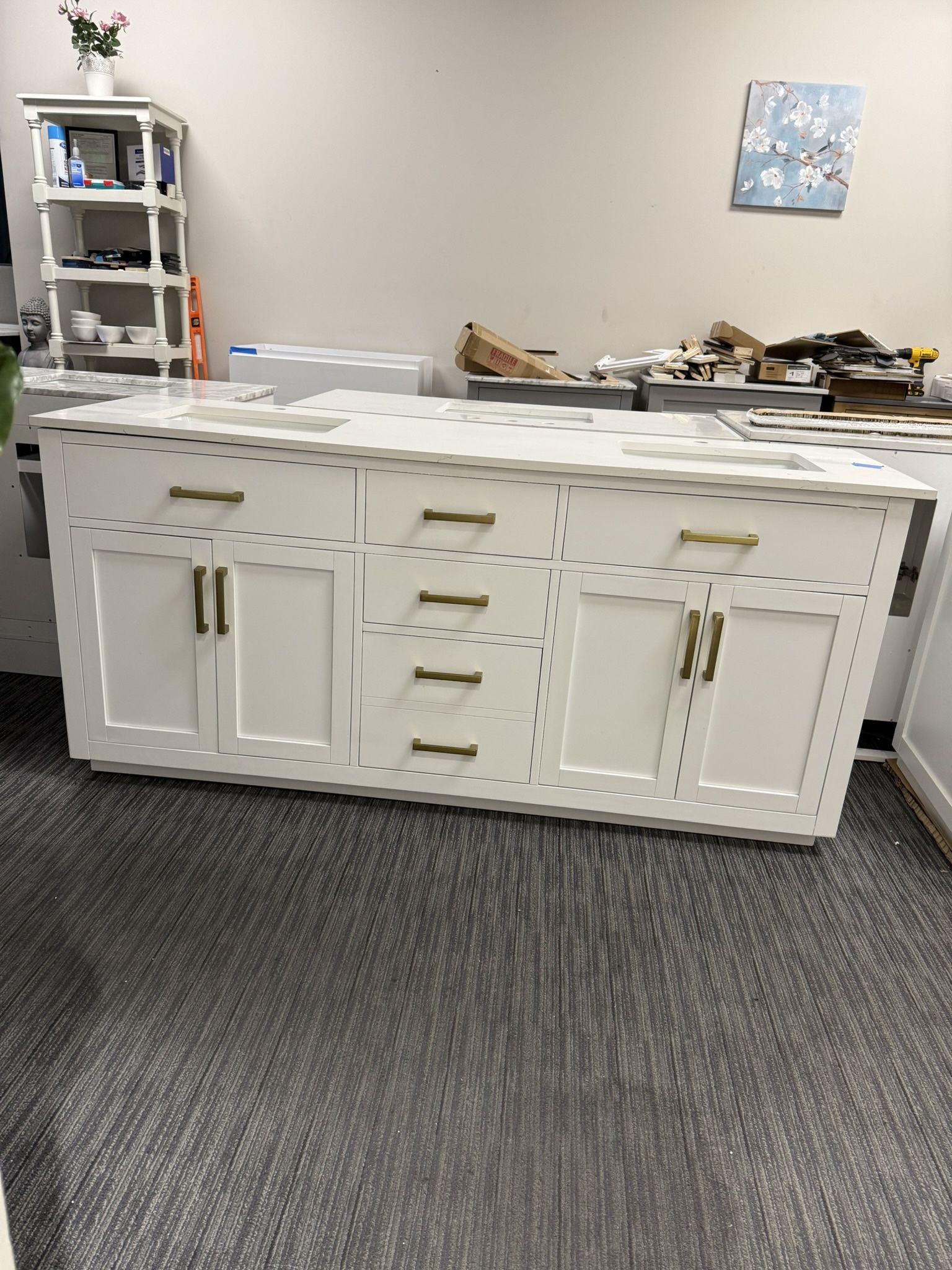 72” Bathroom Vanity in white color ,with solid wood frame ,with soft closing doors ,with soft closing drawers
