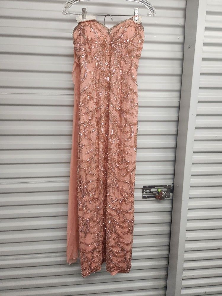 Vintage Lillie Rubin Sequined Pink 100% Silk Full Length Slit Gown Dress Size 4