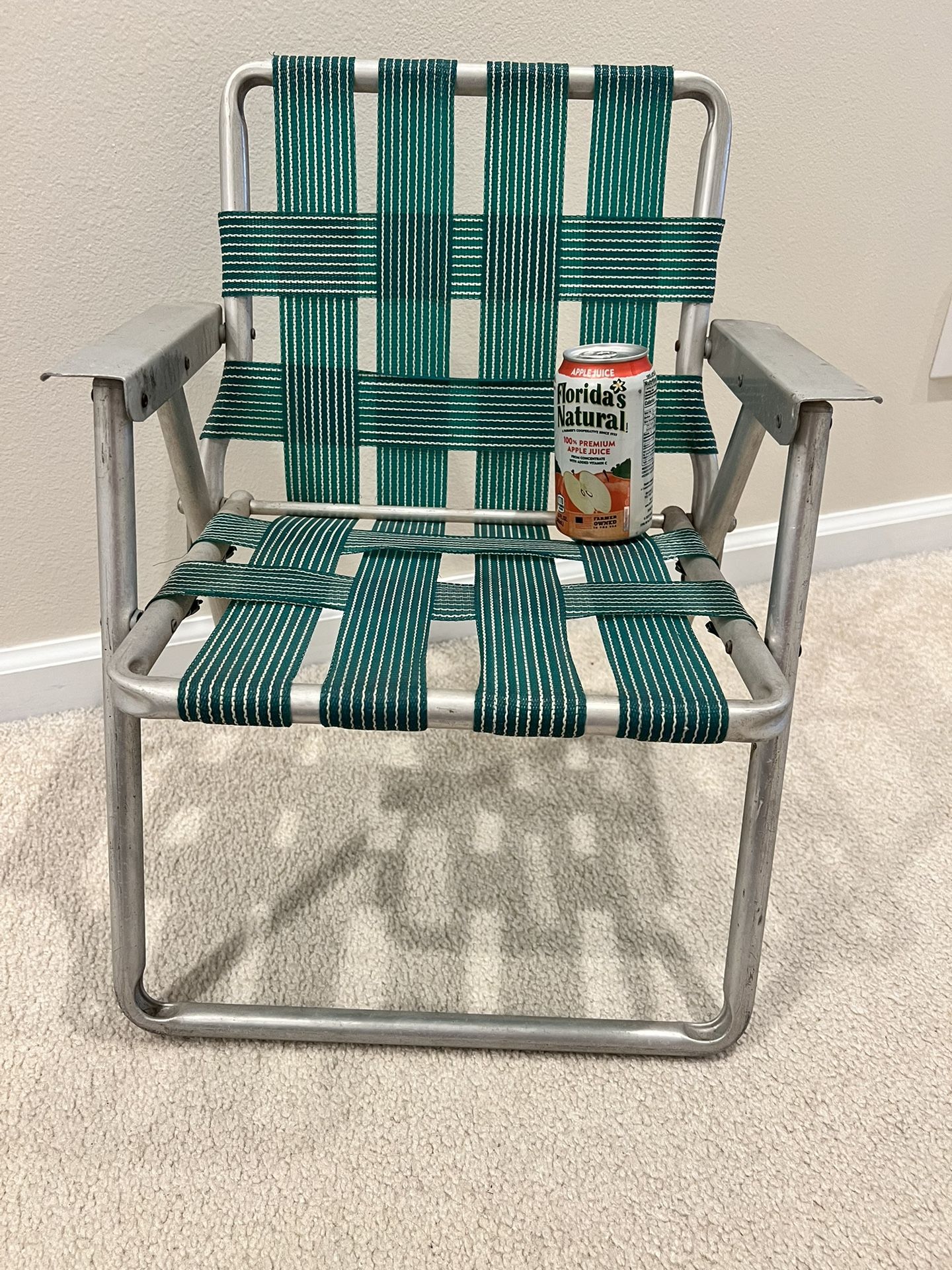 Vintage Mcm Child Folding Lawnchair Woven Web Over Aluminum