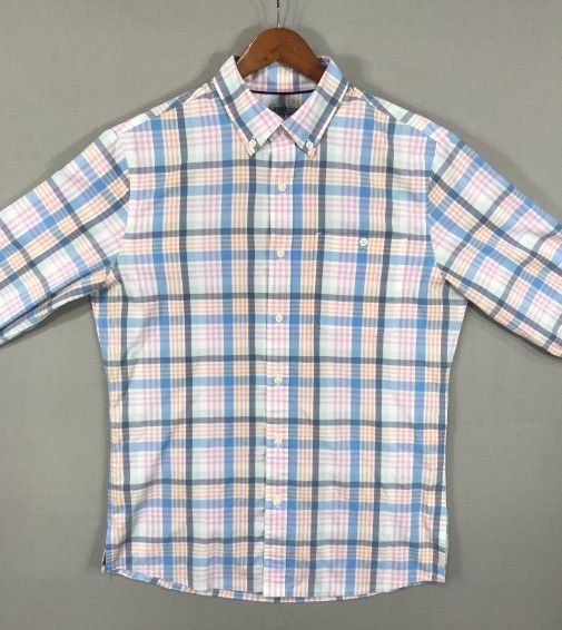 Excellent Used Condition. Men's Small. Pink/Blue Plaid. No holes, rips, stains, or odors. Pre-Laundered, ready to wear. Please see pictures. Coming form a smoke free home. Measurements (approximate) inches with clothing flat and not stretched. Chest: 20" Length: 28" Sleeve: 25" Fast Shipping with 1 Day or Less Handling Time. Thank you for viewing and feel free to message with any questions or offers.