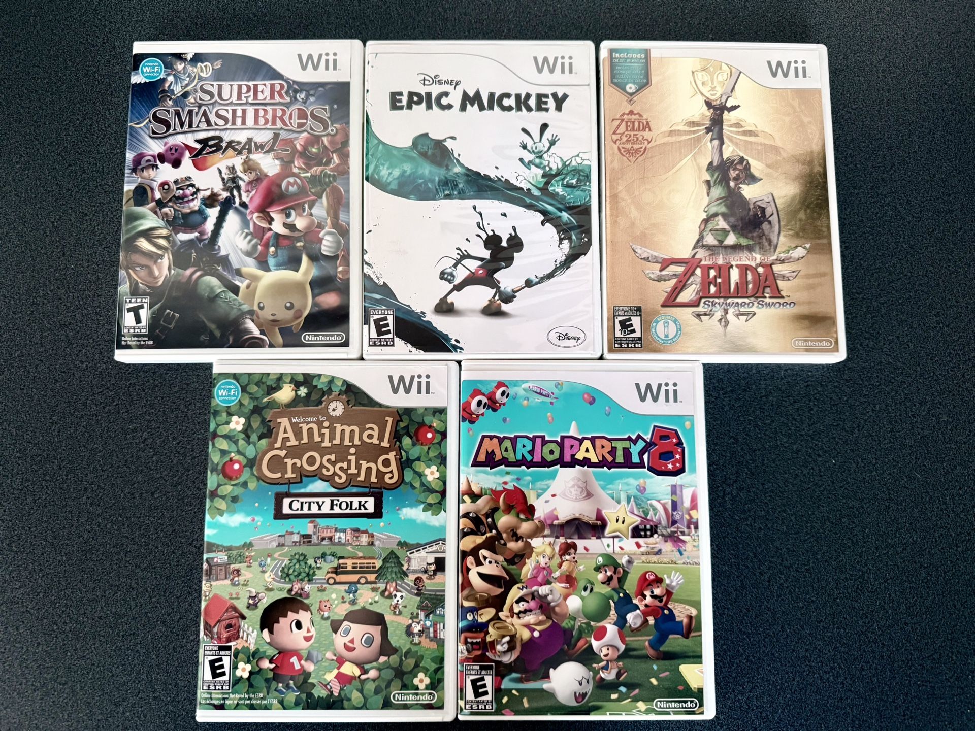 Bundle or separate: Super Smash Bros. Brawl $20 Disney Epic Mickey $5 Legend of Zelda: Skyward Sword $20 Animal Crossing: City Folk $20 Mario Party 8 $20