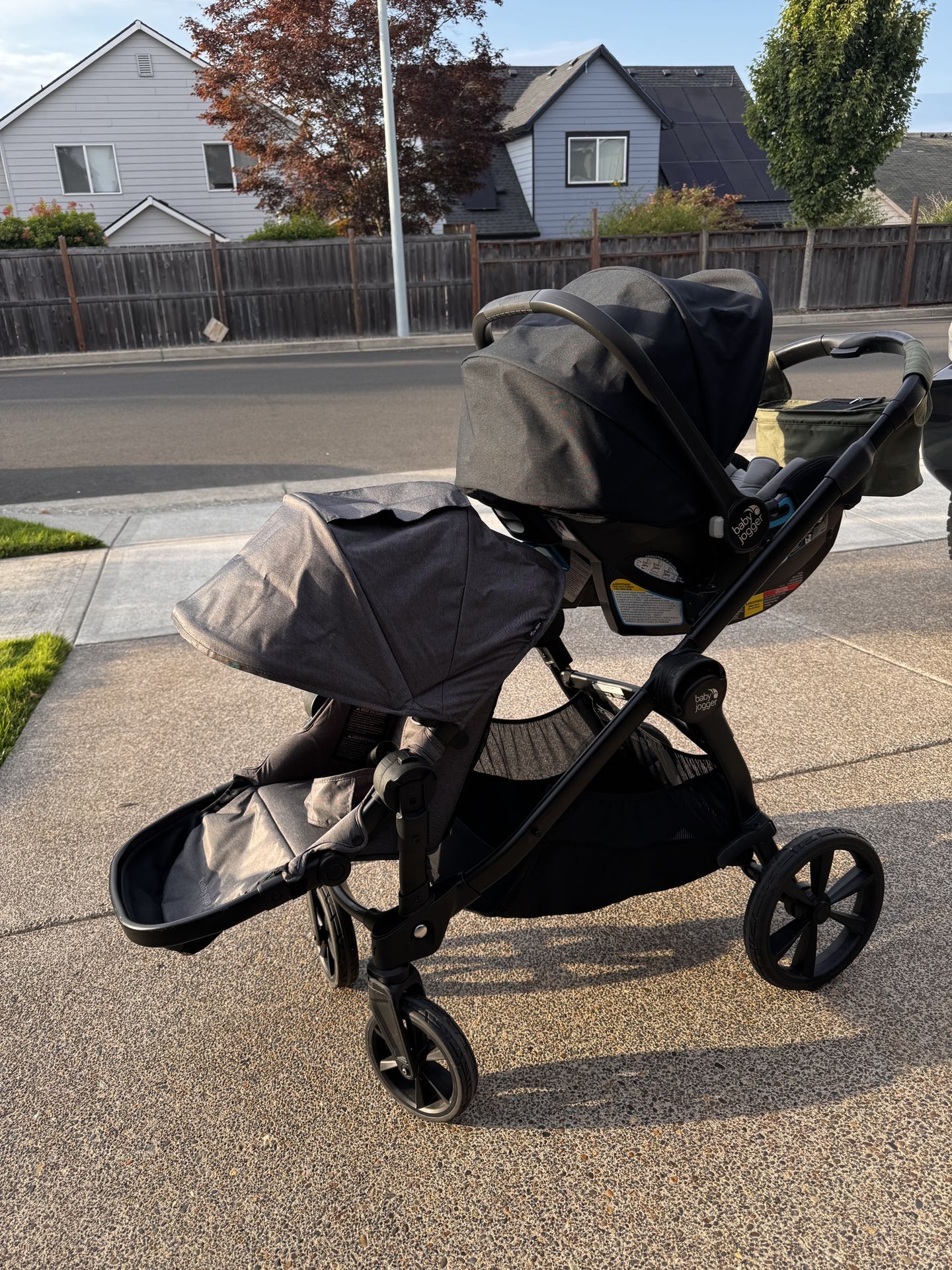 Single/Double stroller with infant base, car seat and toddler seat.
